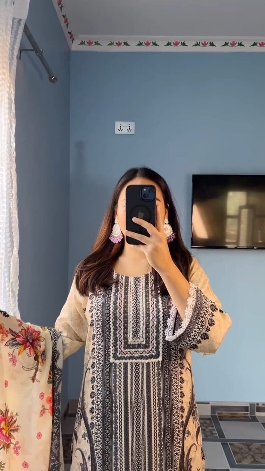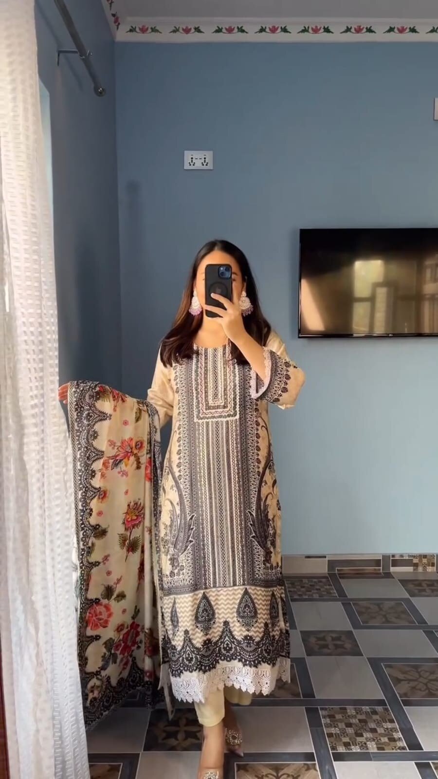 NEW ARRIVAL MUSLIN COTTON DIGITAL PRINT WITH REAL MIRROR HANDWORK AND STONE WORK TOP BOTTOM WITH DUPATTA CREAM