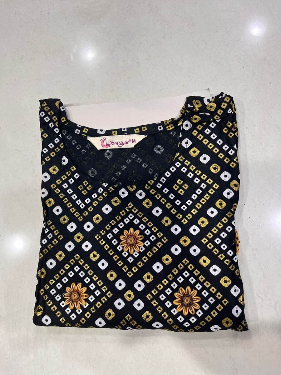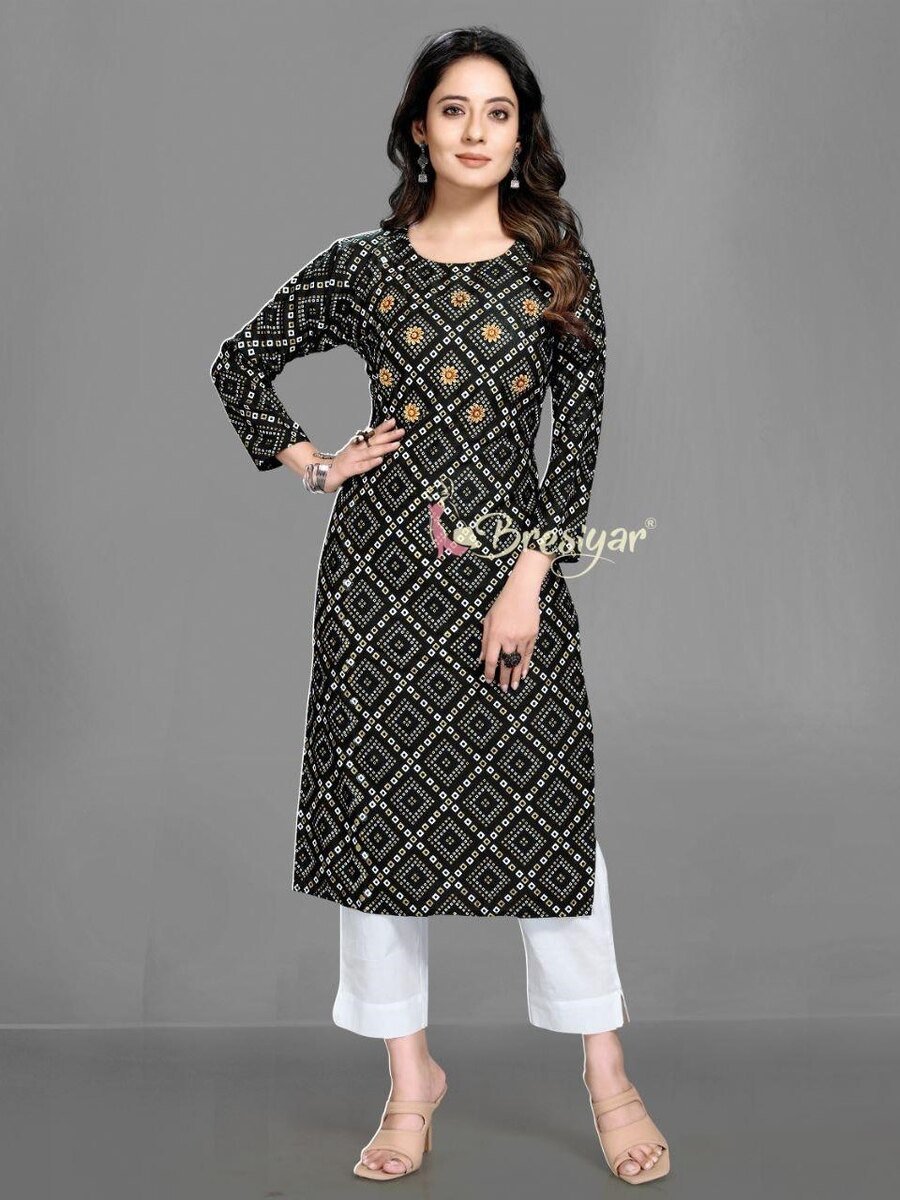 NEW ARRIVAL RAYON BANDHANI PRINTED KURTI BLACK