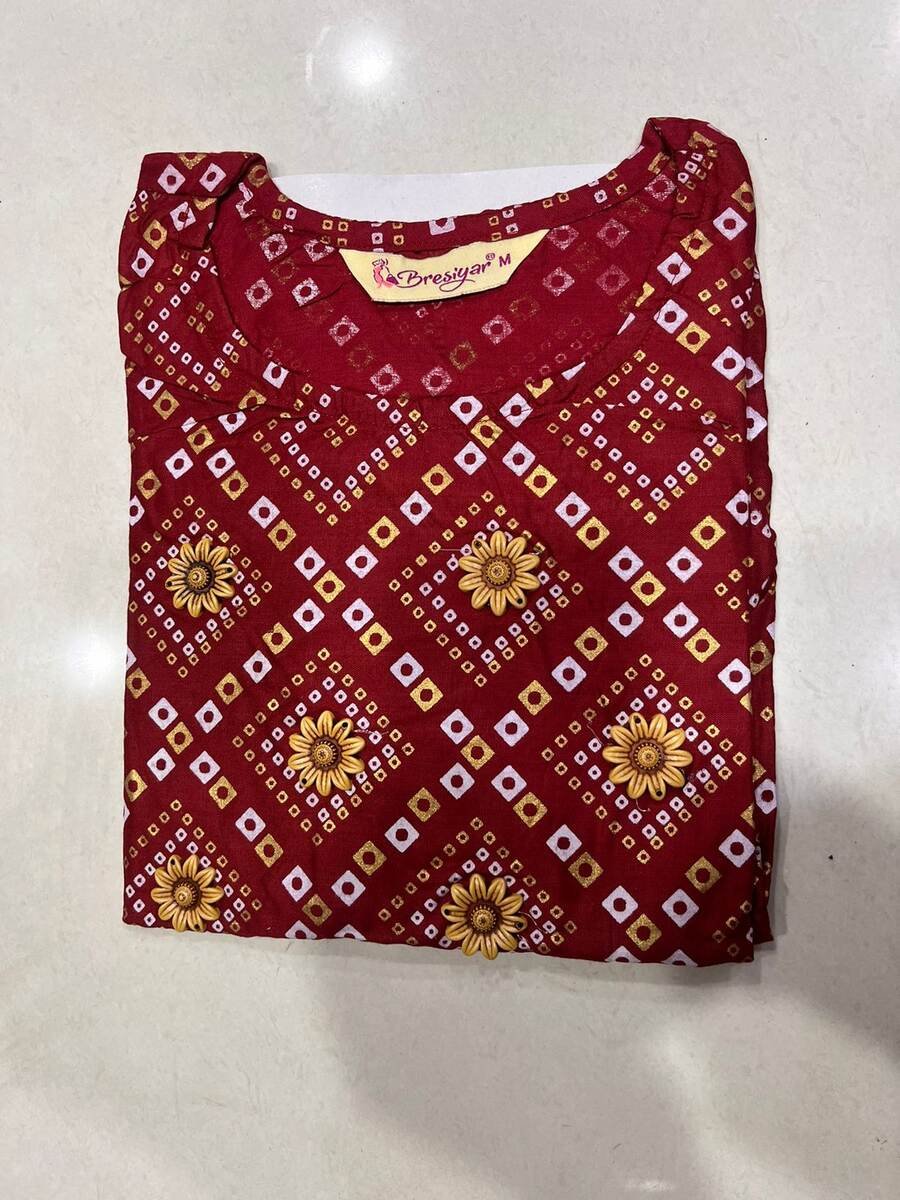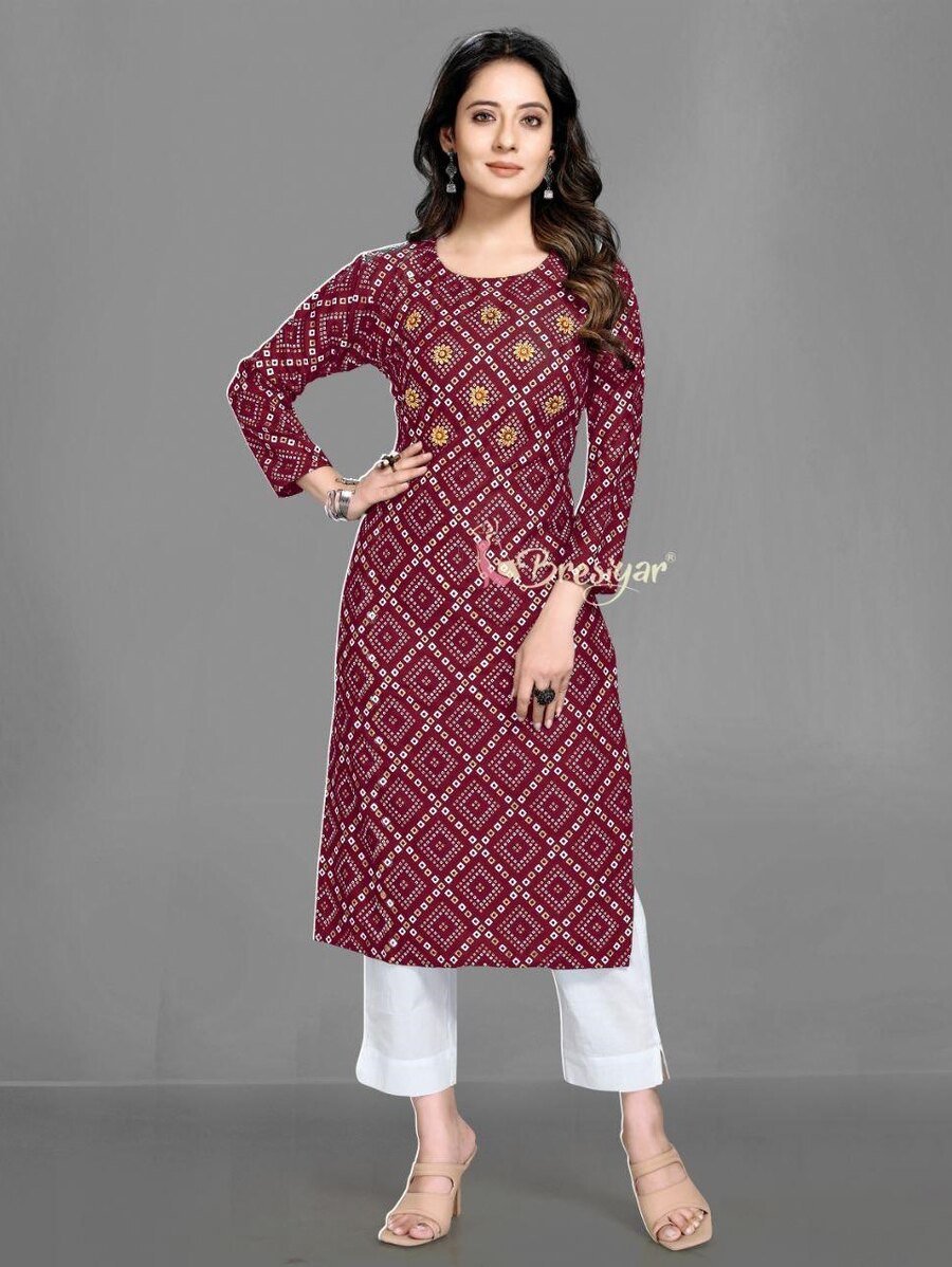 NEW ARRIVAL RAYON BANDHANI PRINTED KURTI MAROON