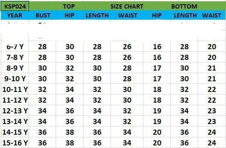 SIZE :- 6 YR|7 YR|8 YR|9 YR|10 YR|11 YR|12 YR|13 YR|14 YR|15 YR|16 YR|