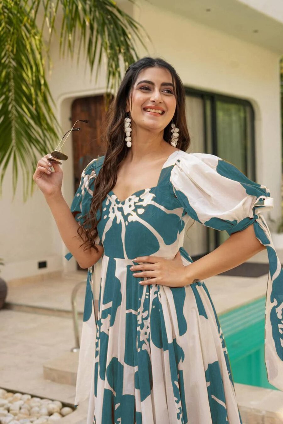 NEW ARRIVAL RAYON DIGITAL PRINTED WORK ONE PEICE DRESS TEAL