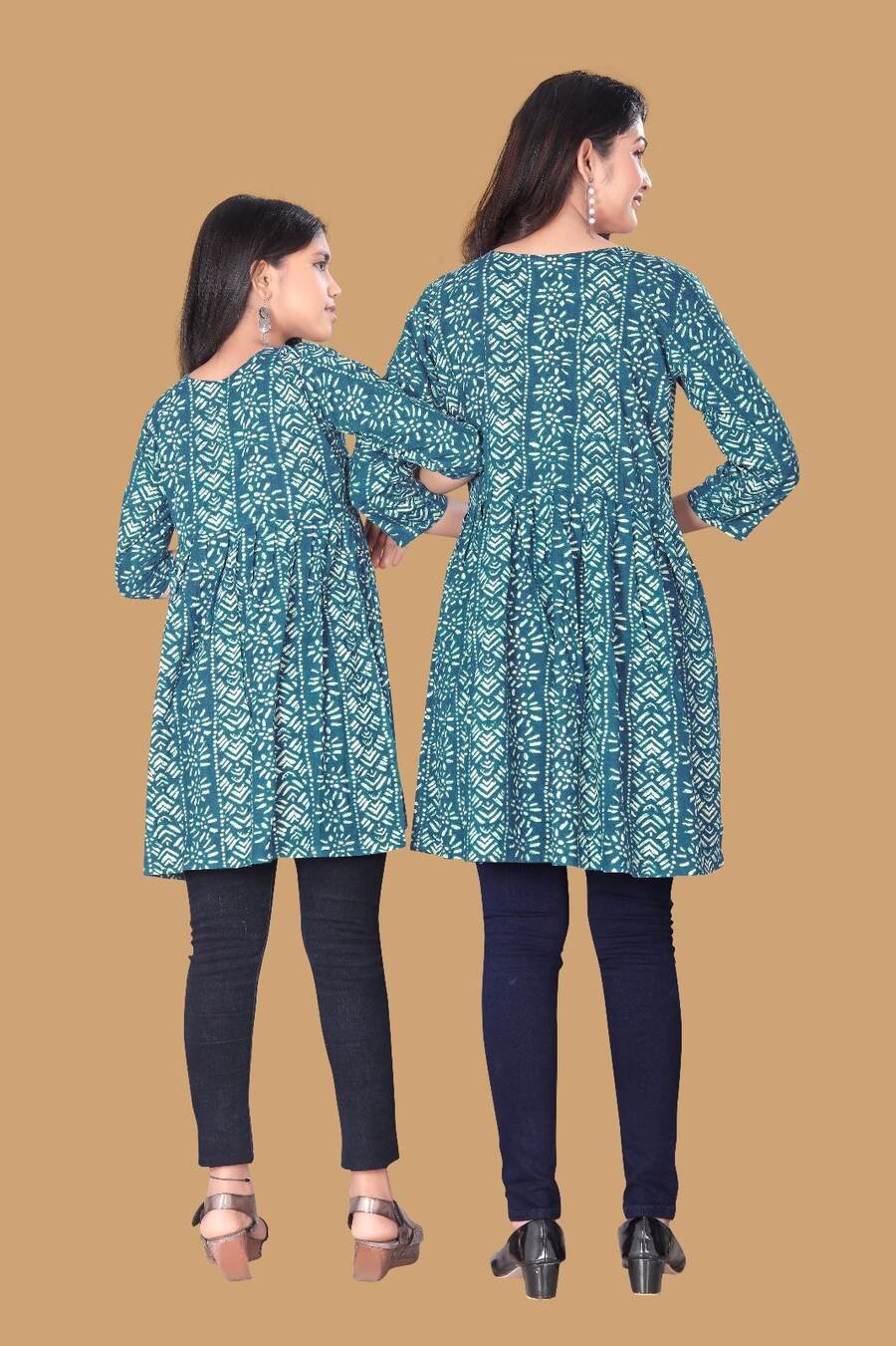 NEW ARRIVAL RAYON PRINTED KURTI MOTHER DAUGHTER COMBO RAMA