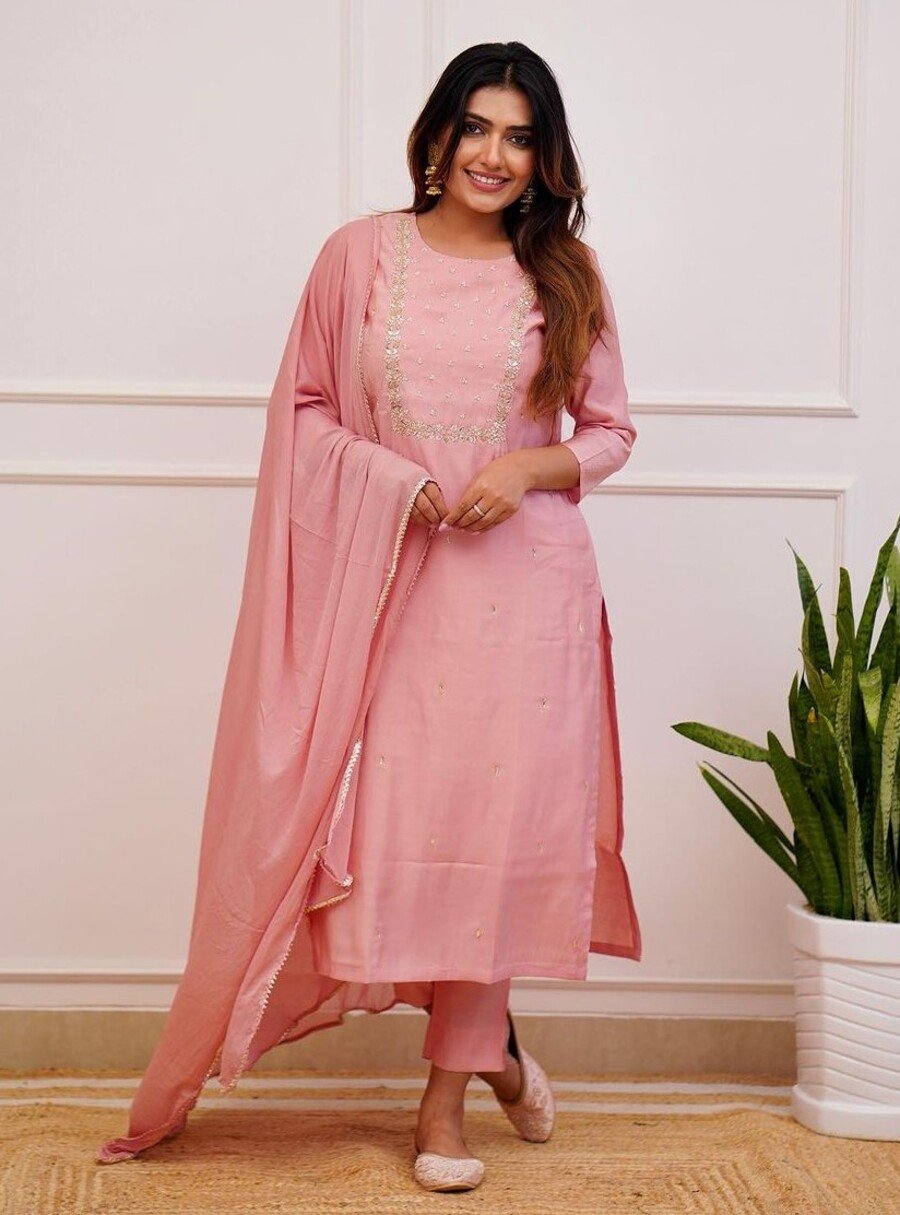 NEW ARRIVAL RAYON SLUB EMBROIDERY WORK TOP BOTTOM WITH DUPATTA BABY PINK