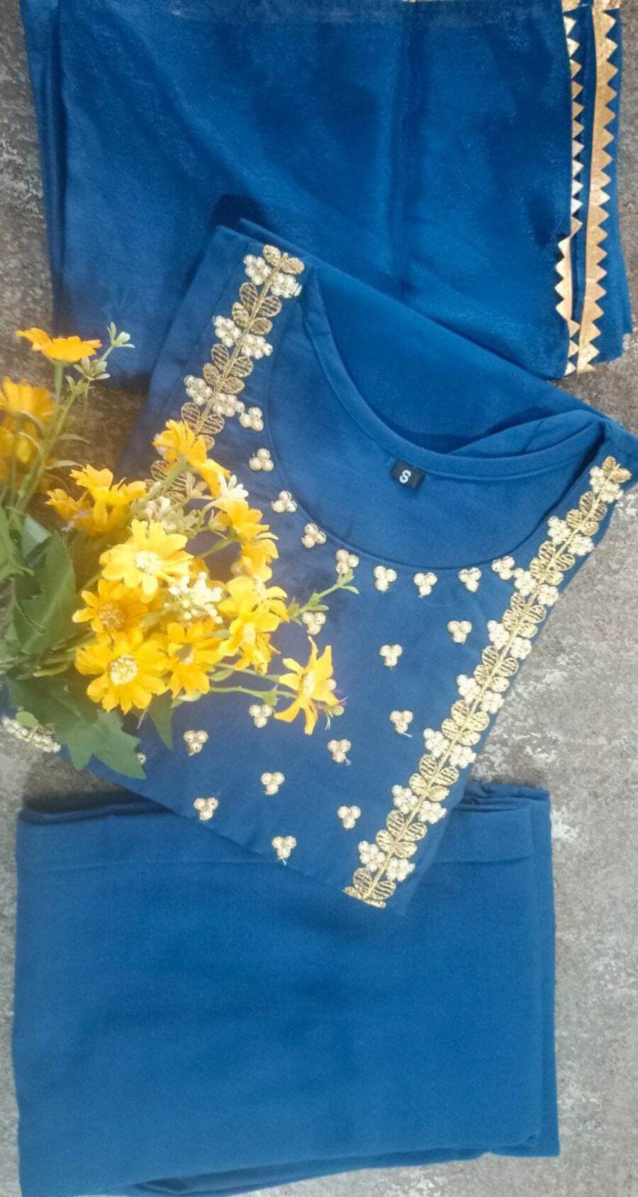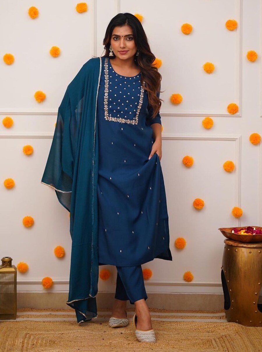 NEW ARRIVAL RAYON SLUB EMBROIDERY WORK TOP BOTTOM WITH DUPATTA BLUE