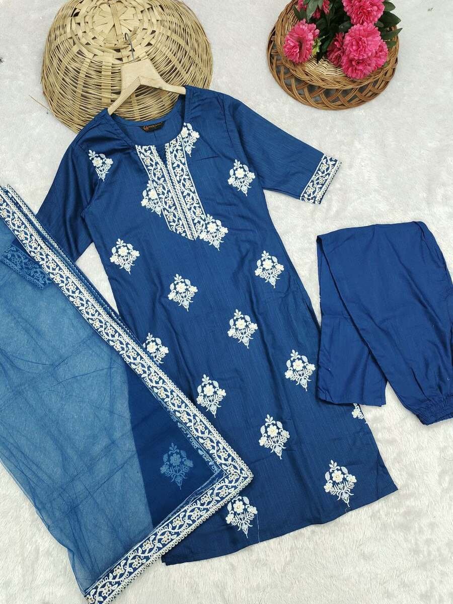 NEW ARRIVAL RAYON THREAD EMBROIDERY WORK TOP BOTTOM WITH DUPATTA BLUE
