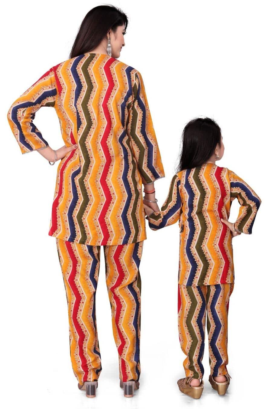 NEW ARRIVAL RAYON ZIGZAG FOIL PRINTED MOTHER DAUGHTER CO-ORD SET MULTI
