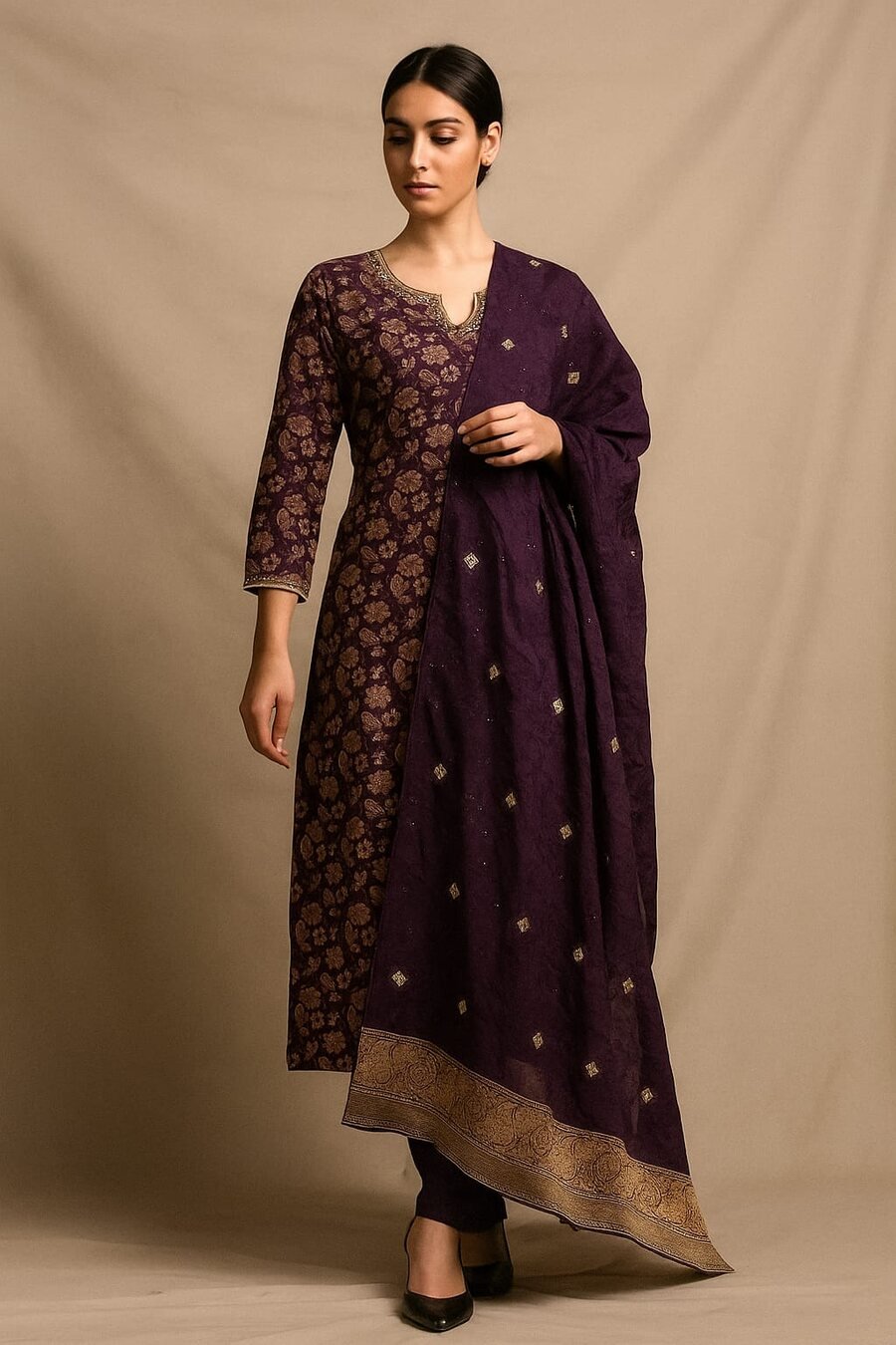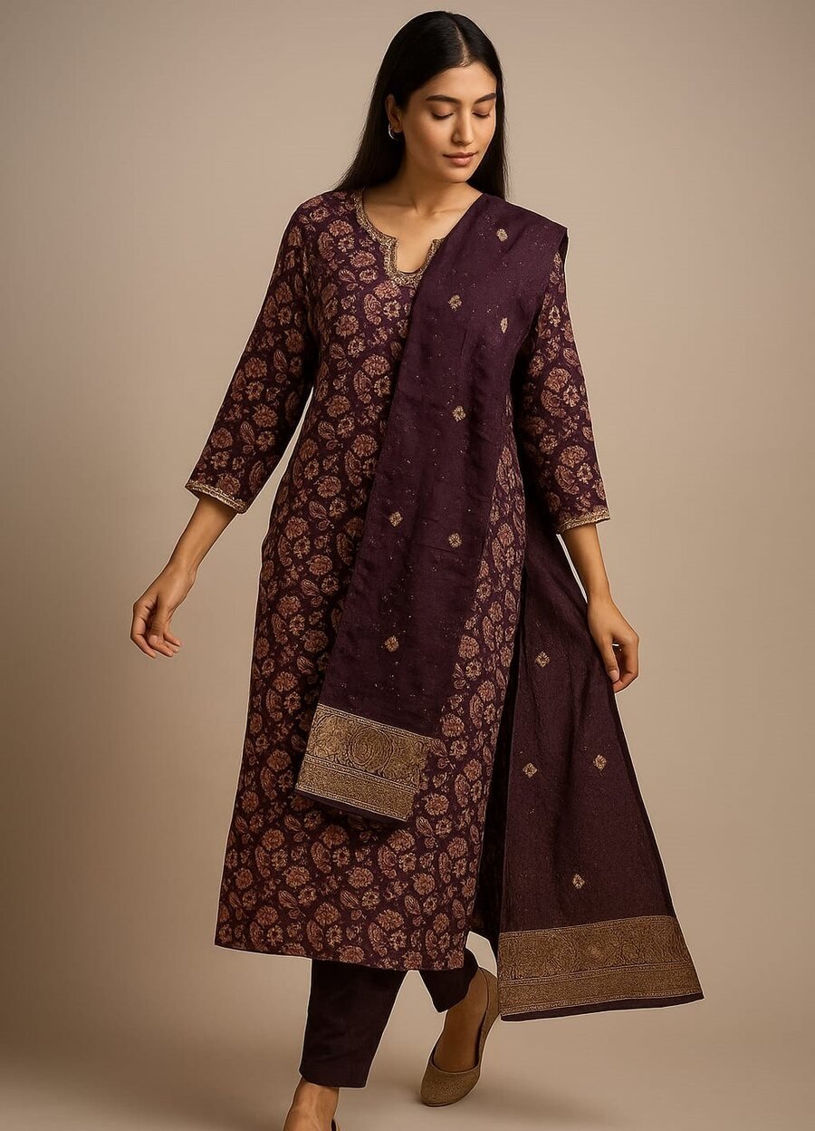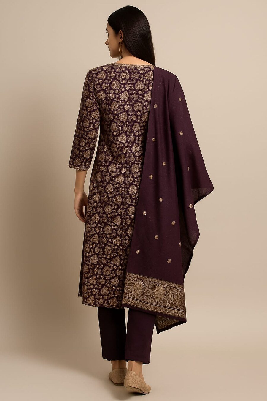 NEW ARRIVAL ROMAN DISCHARGE HANDWORK TOP BOTTOM WITH DUPATTA WINE