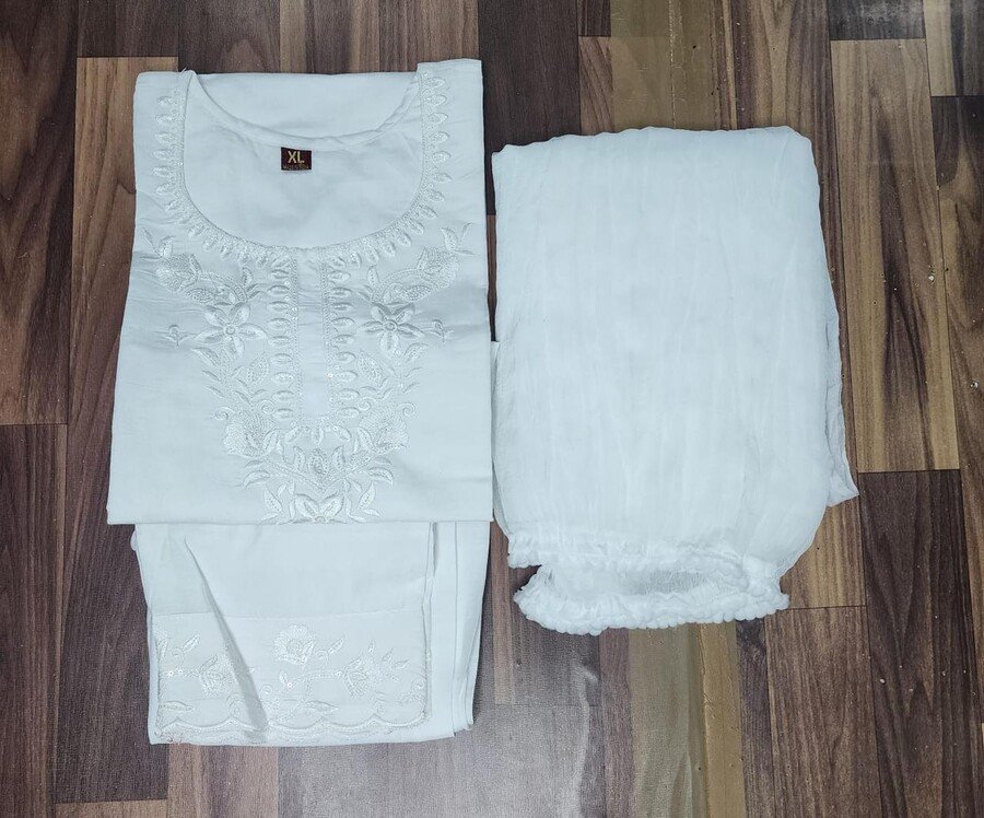 NEW ARRIVAL ROMAN SILK EMBROIDERY SEQUENCE WORK TOP BOTTOM WITH DUPATTA WHITE