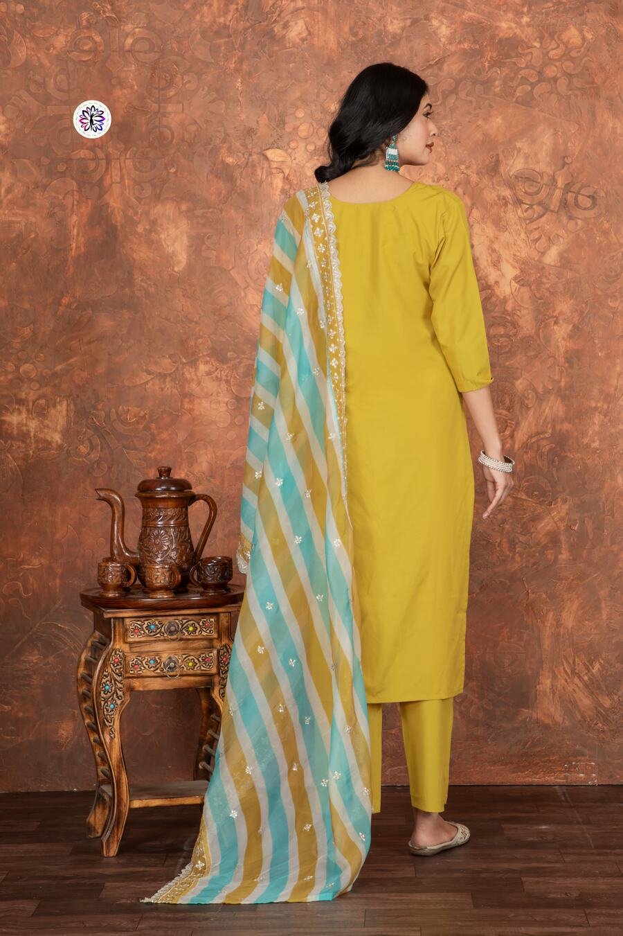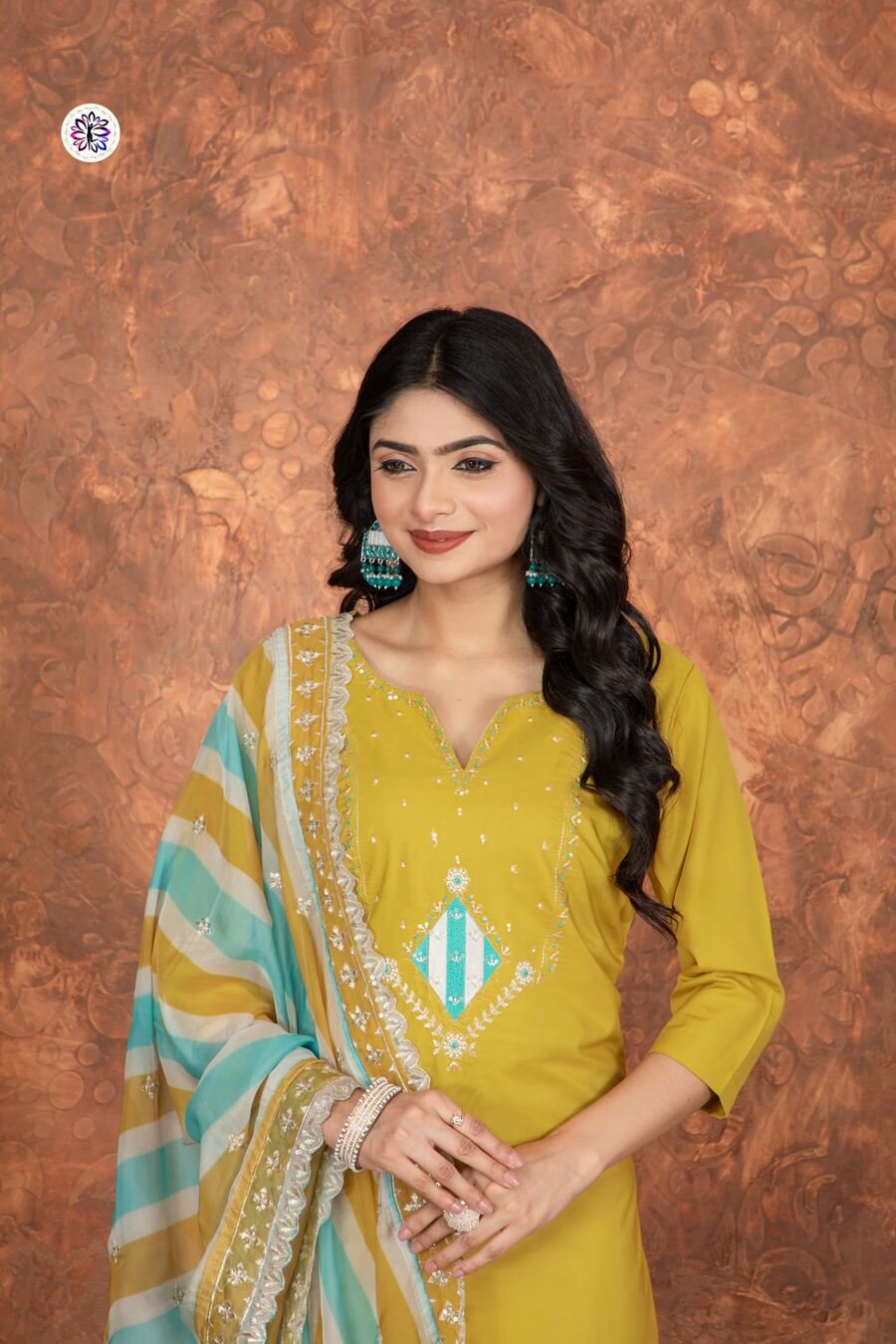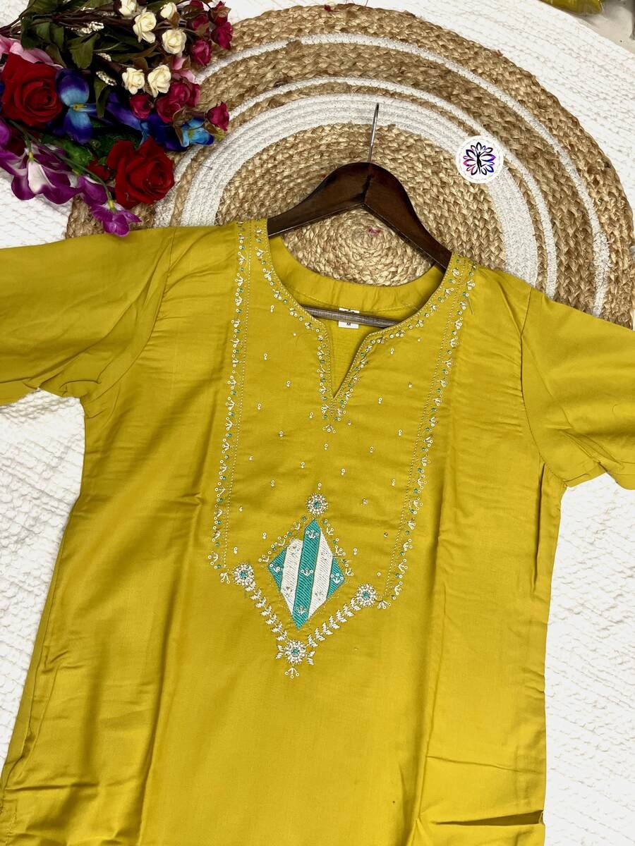 NEW ARRIVAL ROMAN SILK EMBROIDERY WORK TOP BOTTOM WITH DUPATTA YELLOW
