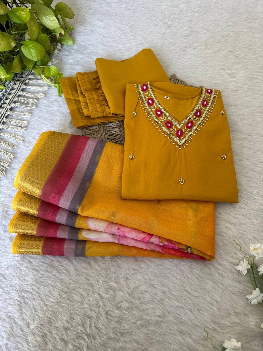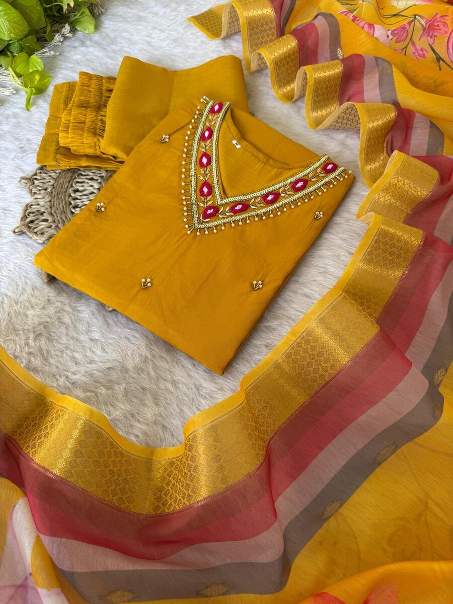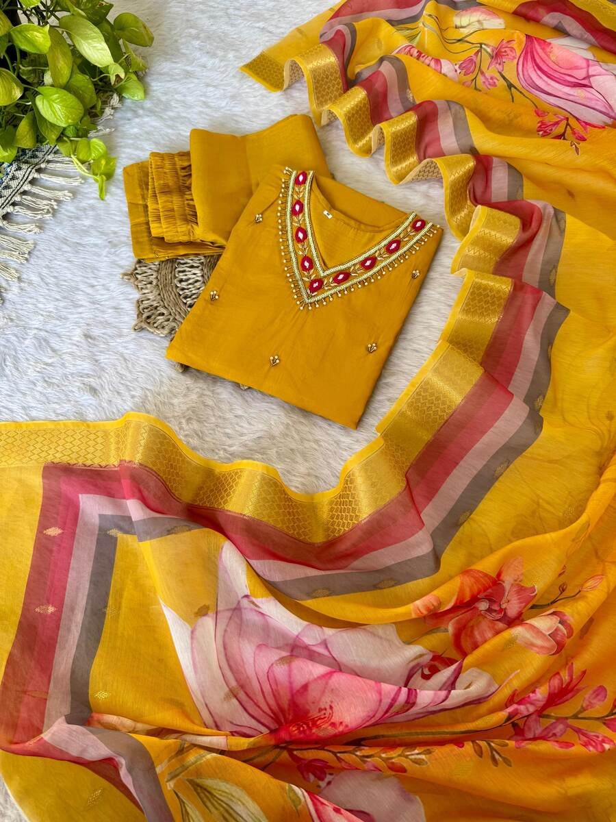 NEW ARRIVAL ROMAN SILK HANDWORK TOP BOTTOM WITH DUPATTA YELLOW