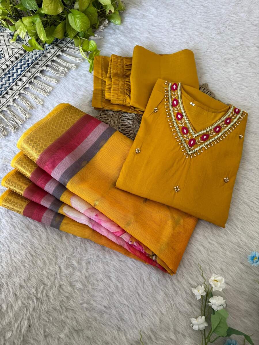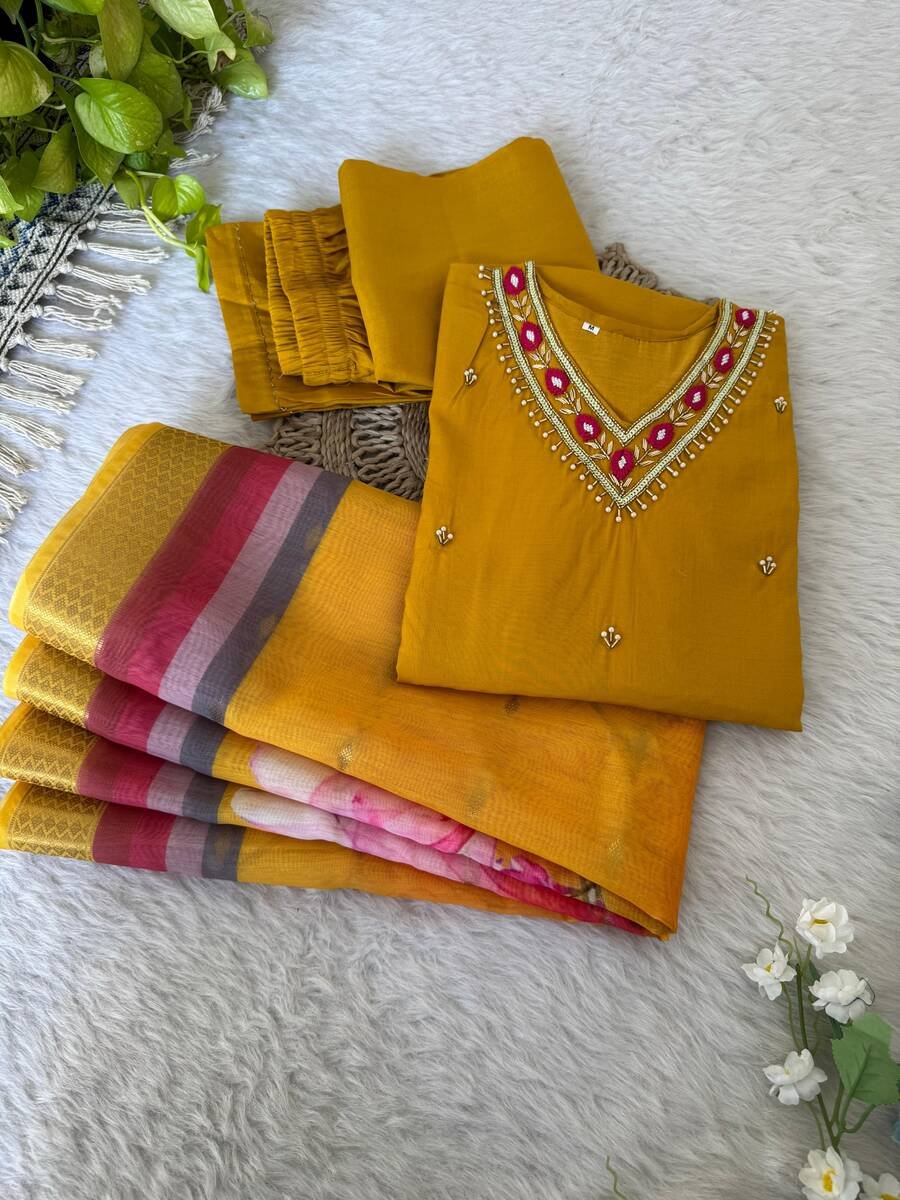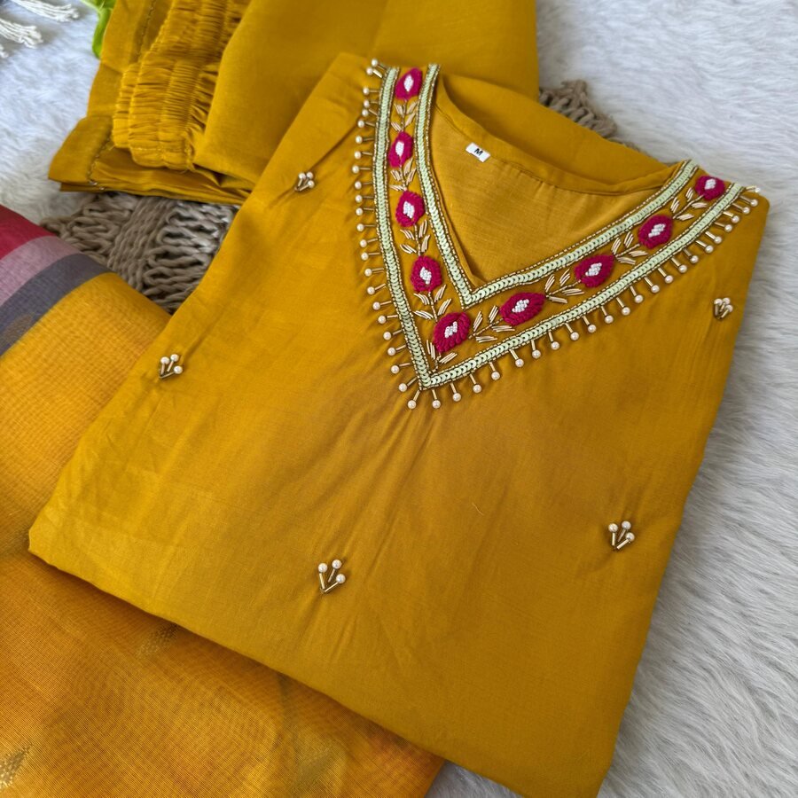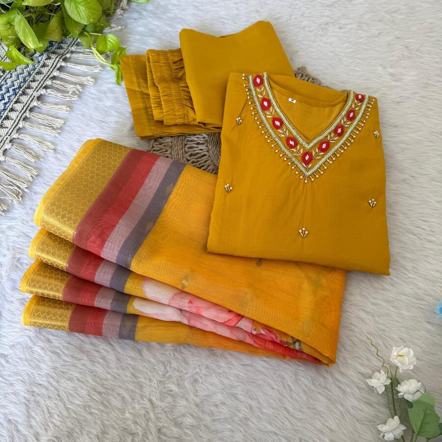 NEW ARRIVAL ROMAN SILK HANDWORK TOP BOTTOM WITH DUPATTA YELLOW