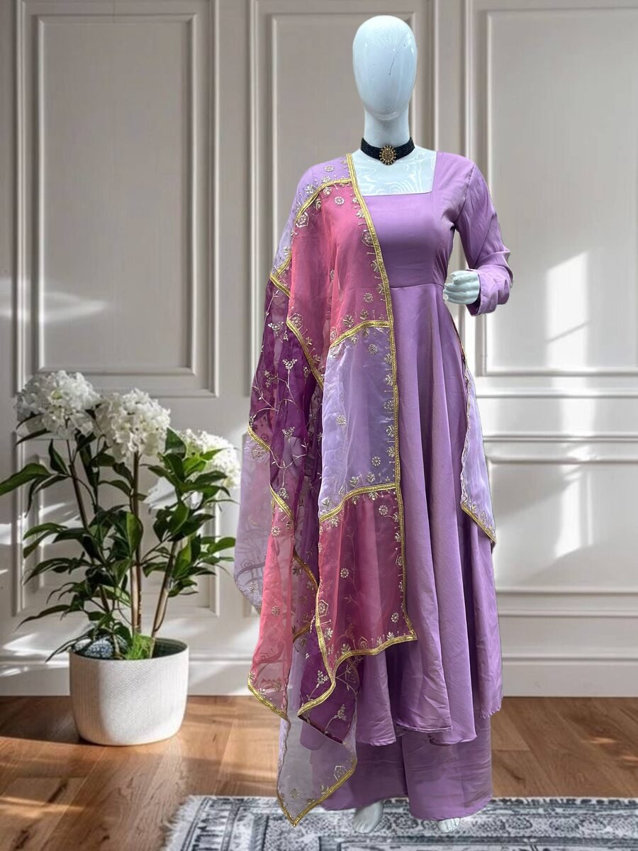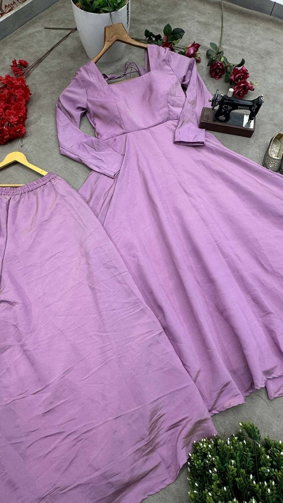 NEW ARRIVAL SHIMMER SILK PLAIN GOWN BOTTOM WITH DUPATTA LAVENDER