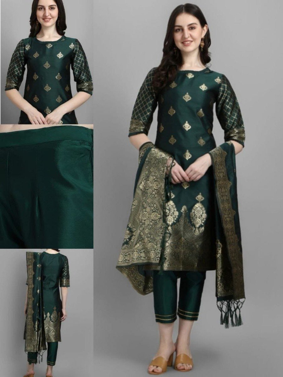 NEW ARRIVAL SILK BLEND JACQUARD WORK TOP BOTTOM WITH DUPATTA GREEN