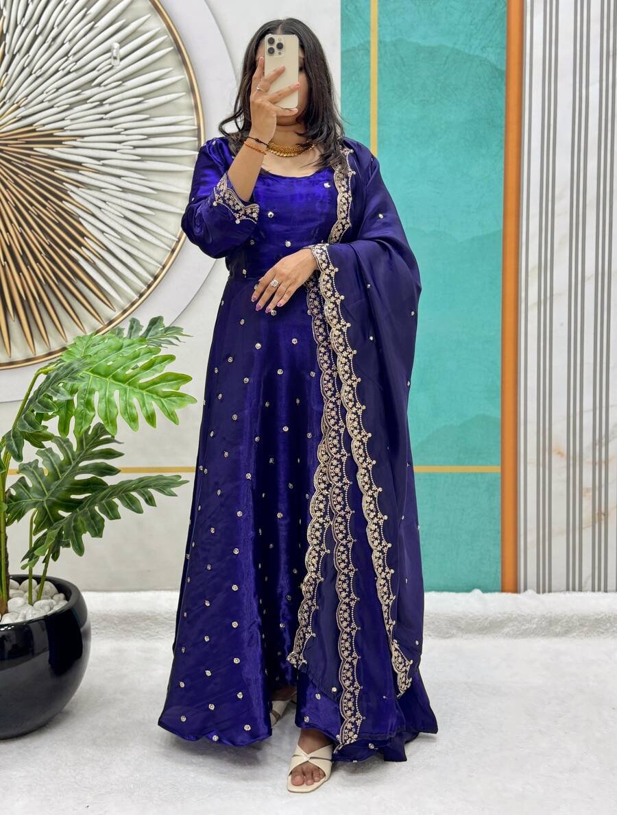 NEW ARRIVAL SPACE SILK SEQUENCE EMBROIDERY WORK GOWN WITH DUPATTA BLUE