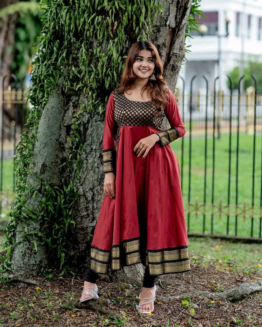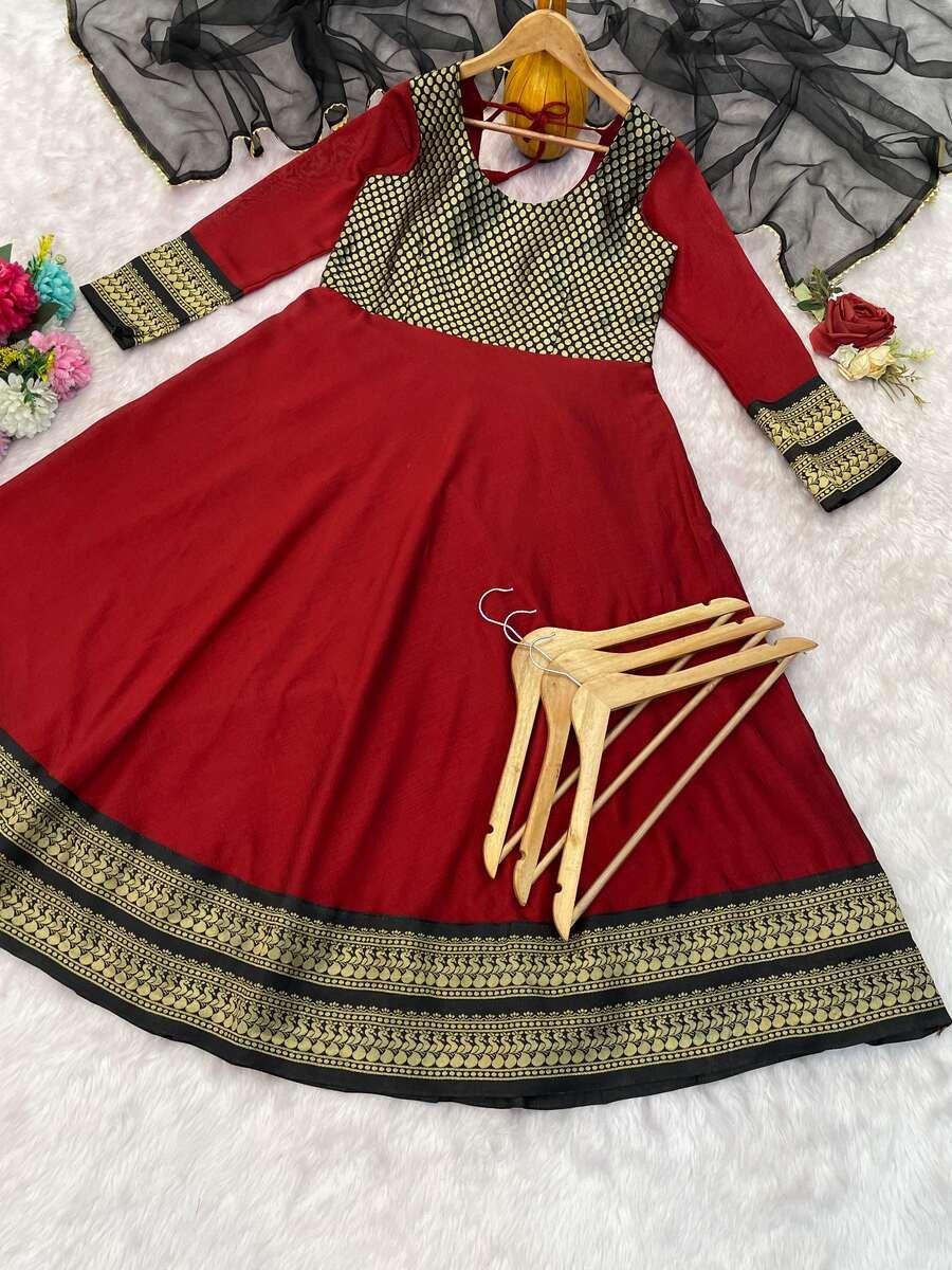 NEW ARRIVAL VICHITRA SILK JACQUARD ZARI WEAVING WORK ANARKALI WITH DUPATTA MAROON