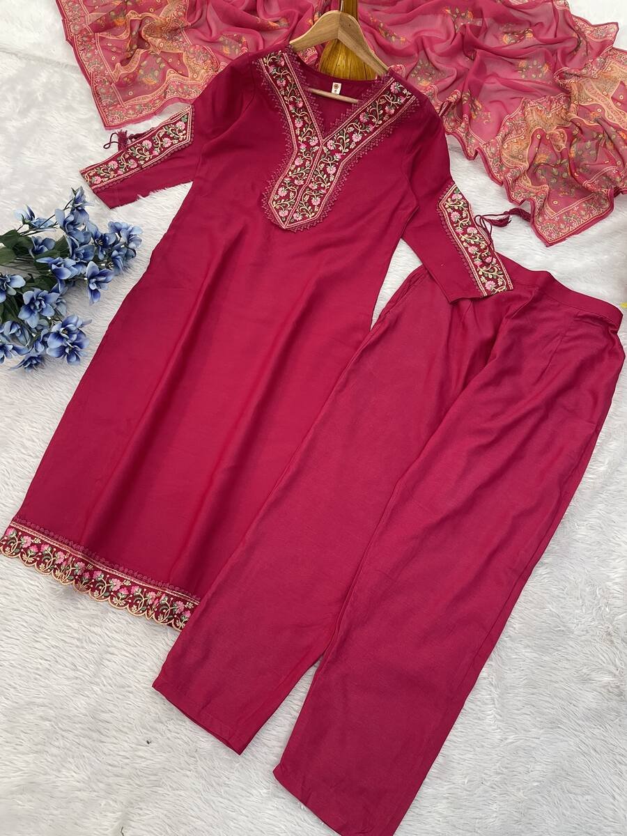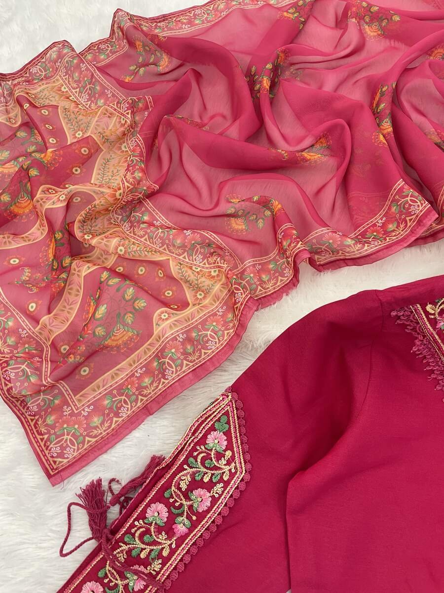 NEW ARRIVAL VISCOSE CHANDERI SEQUENCE EMBROIDERY WORK TOP BOTTOM WITH DUPATTA RANI