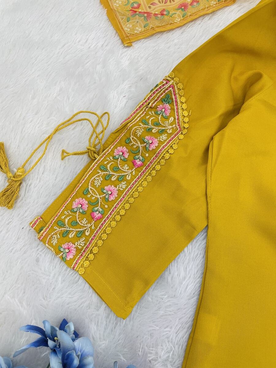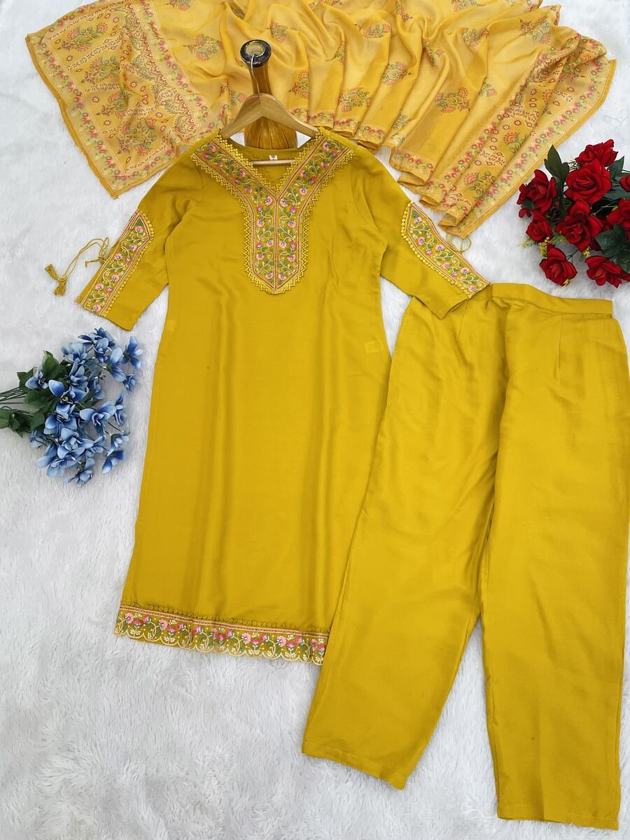 NEW ARRIVAL VISCOSE CHANDERI SEQUENCE EMBROIDERY WORK TOP BOTTOM WITH DUPATTA YELLOW