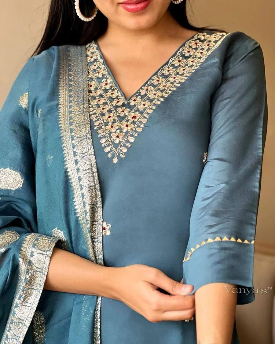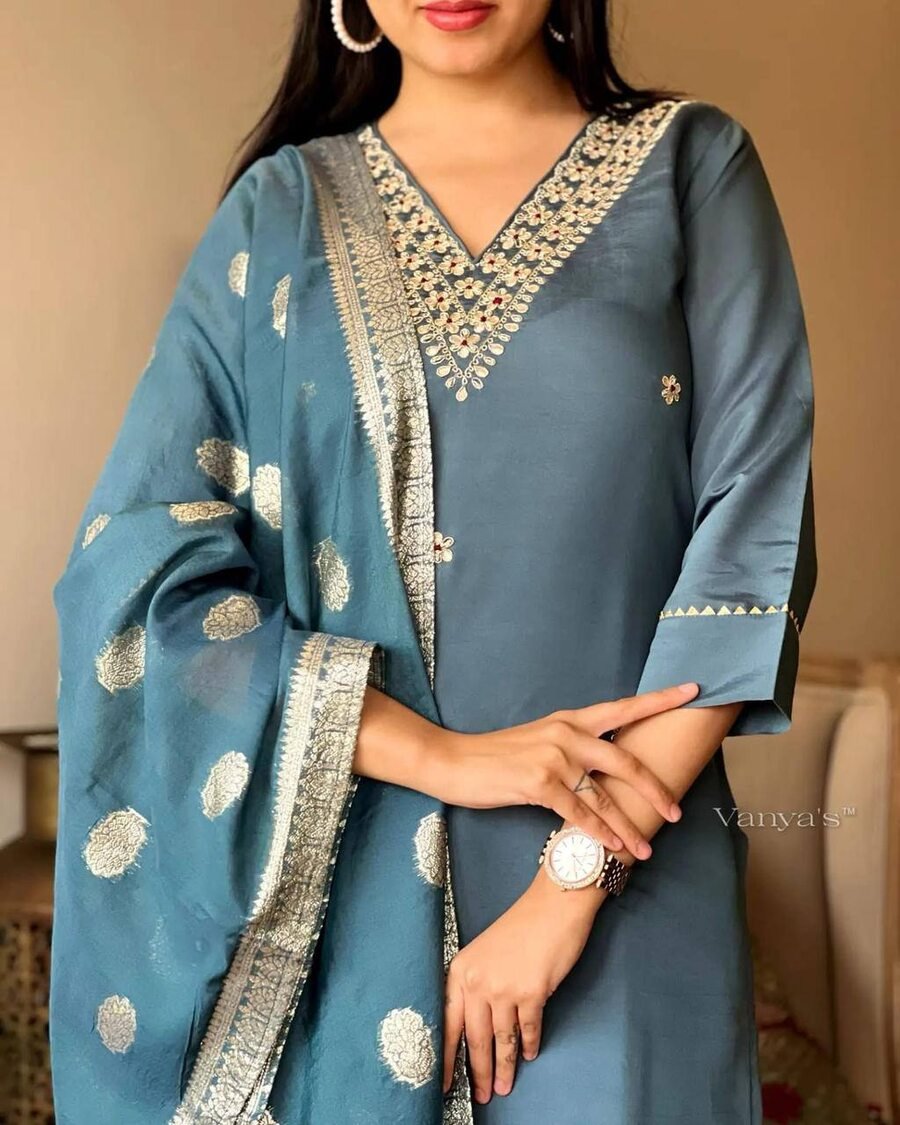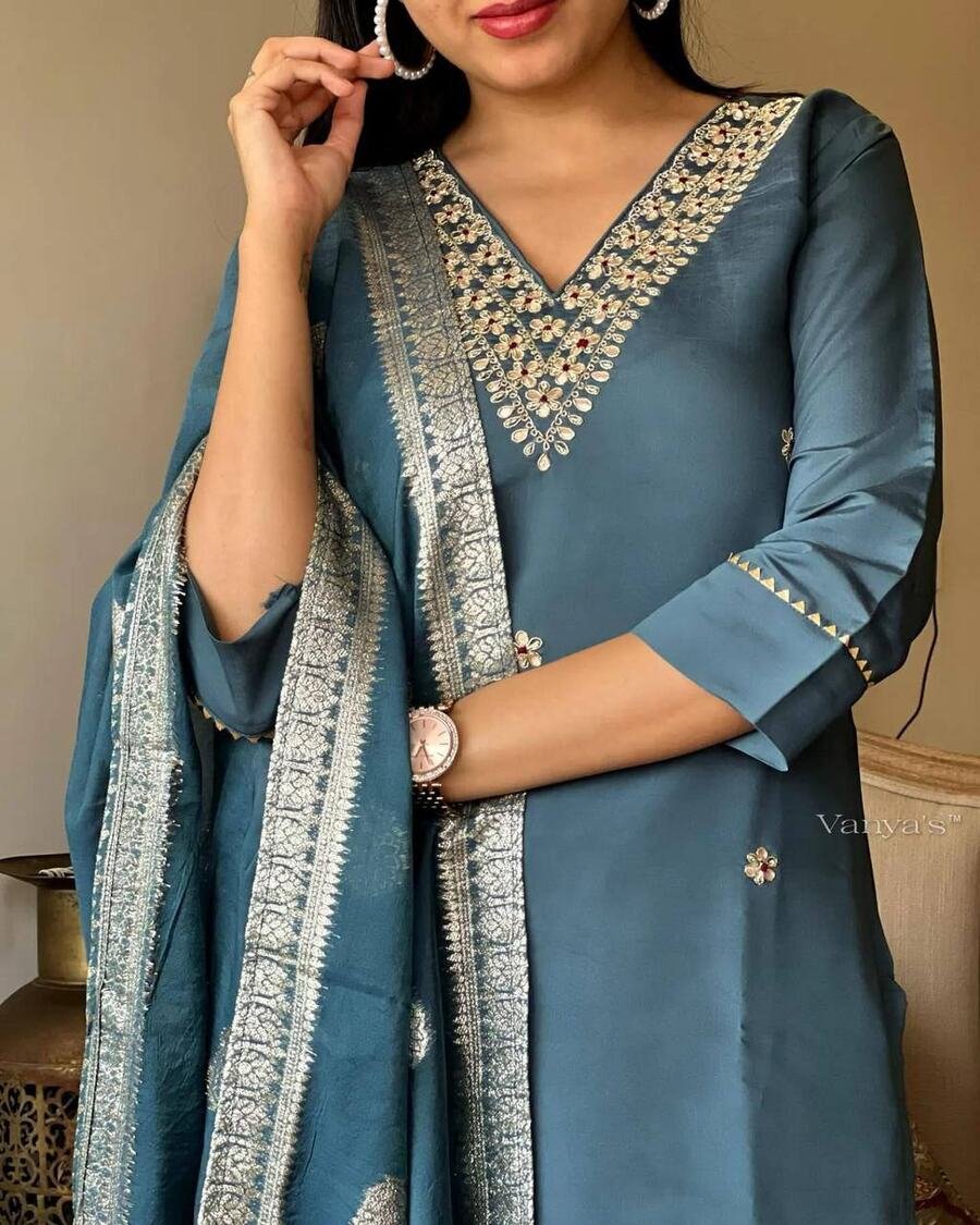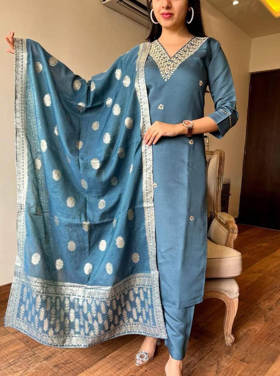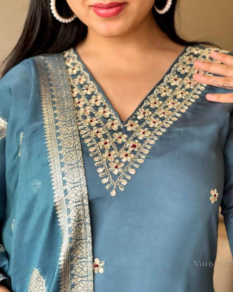 DUPATTA FABRIC :- CHANDERI JACQUARD AND WEAVING WITH FULL ZARI WORK
