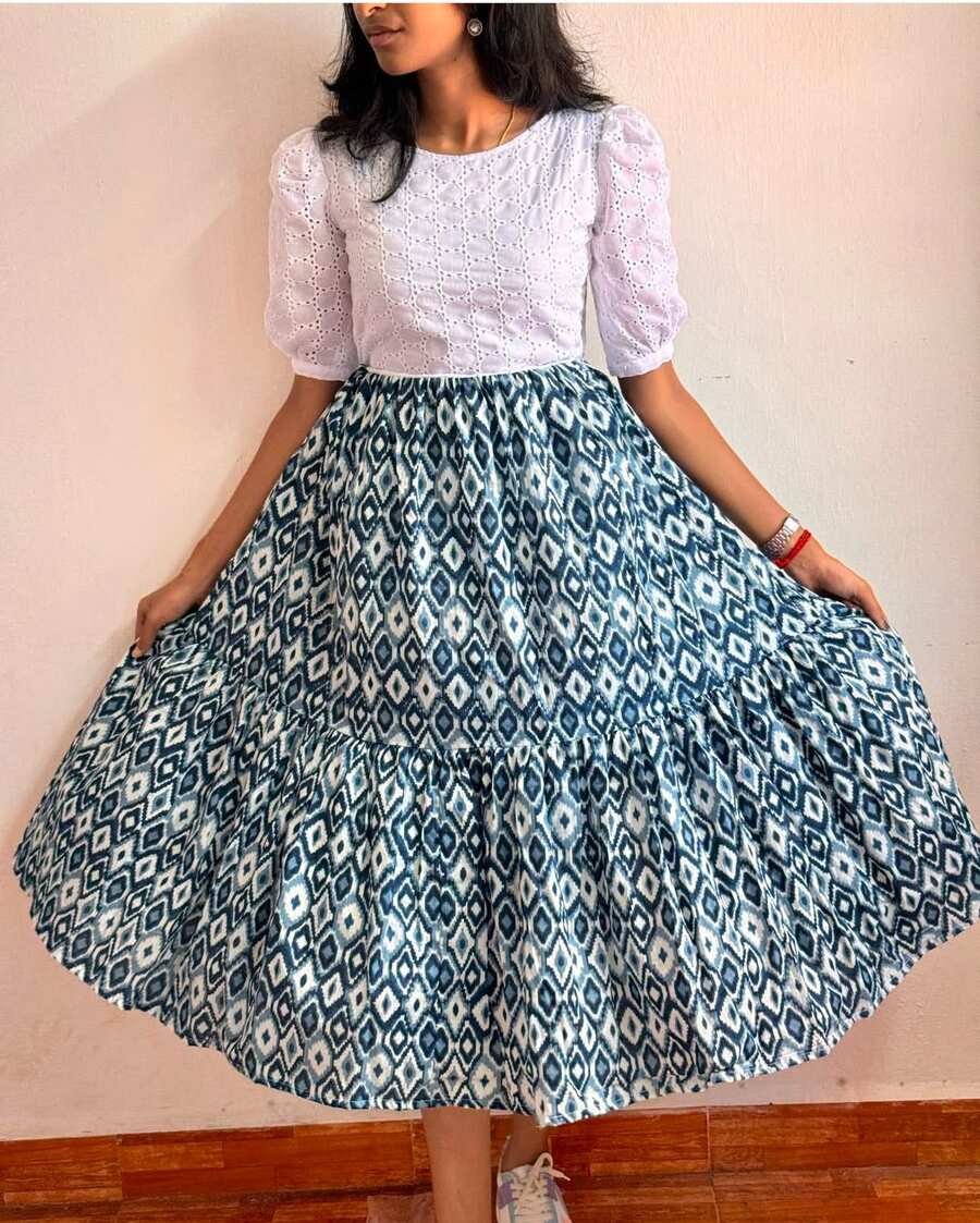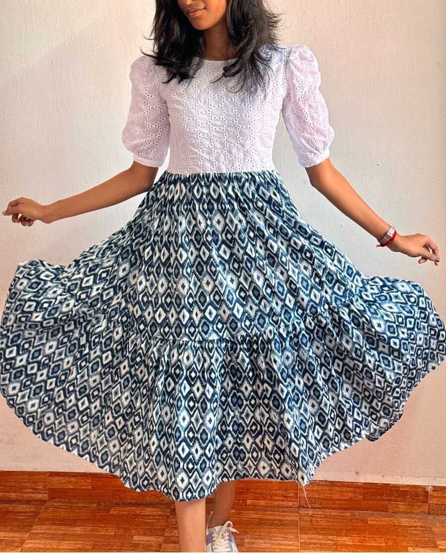 NRE ARRIVAL MUSLIN AND HAKOBA IKAT PRINTED ONE PIECE WHITE