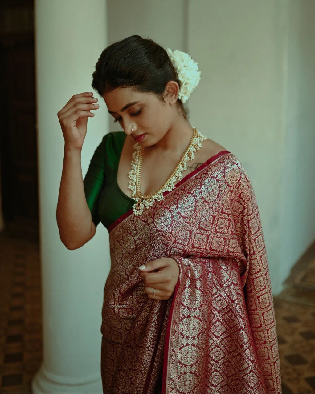 PARTY WEAR BANARASI SOFT SILK SAREE WITH MACHING BLOUSE MAROON