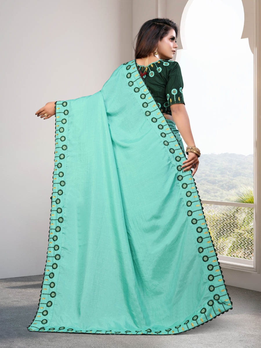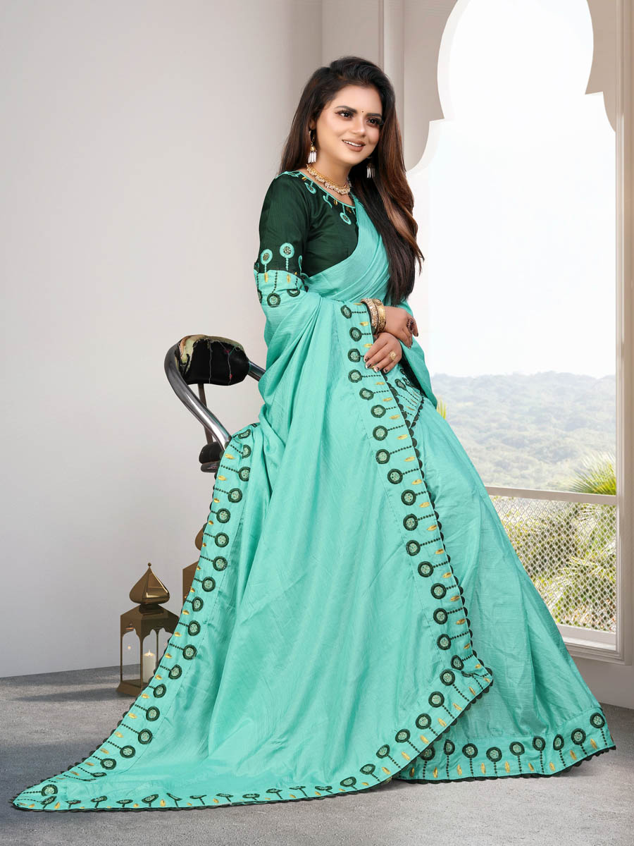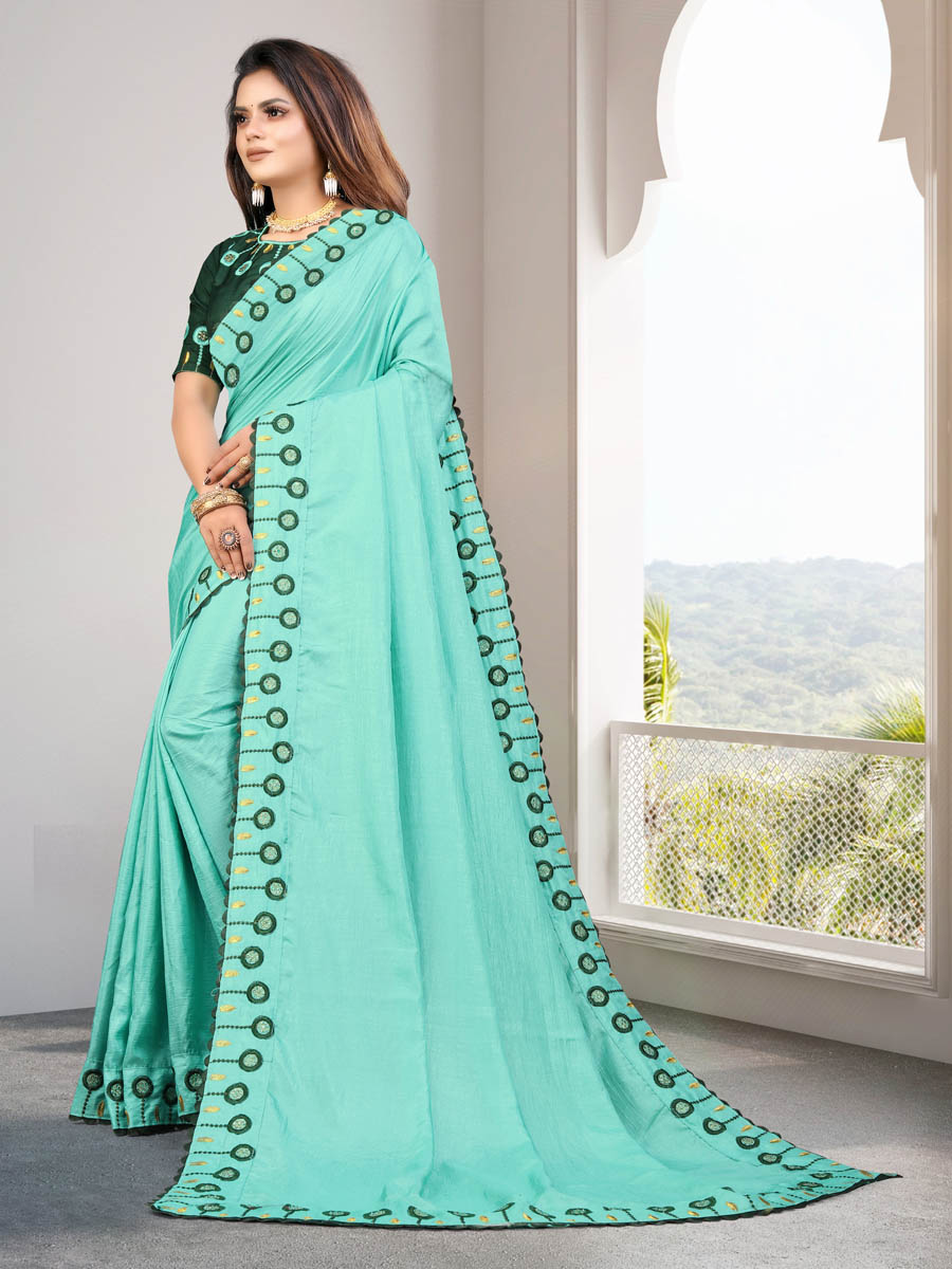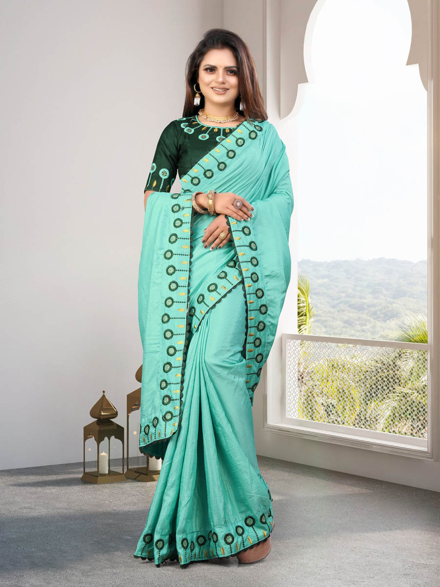 PARTY WEAR DOLA SILK EMBROIDERY WORK SAREE WITH UNSTITCHED BLOUSE MINT