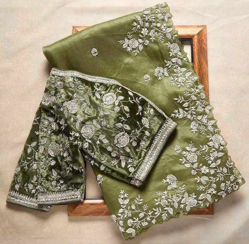 5.5 METER SOFT ORGANZA SILK SAREE WITH 1.20 METER SATIN BANGLORI SILK BLOUSE
