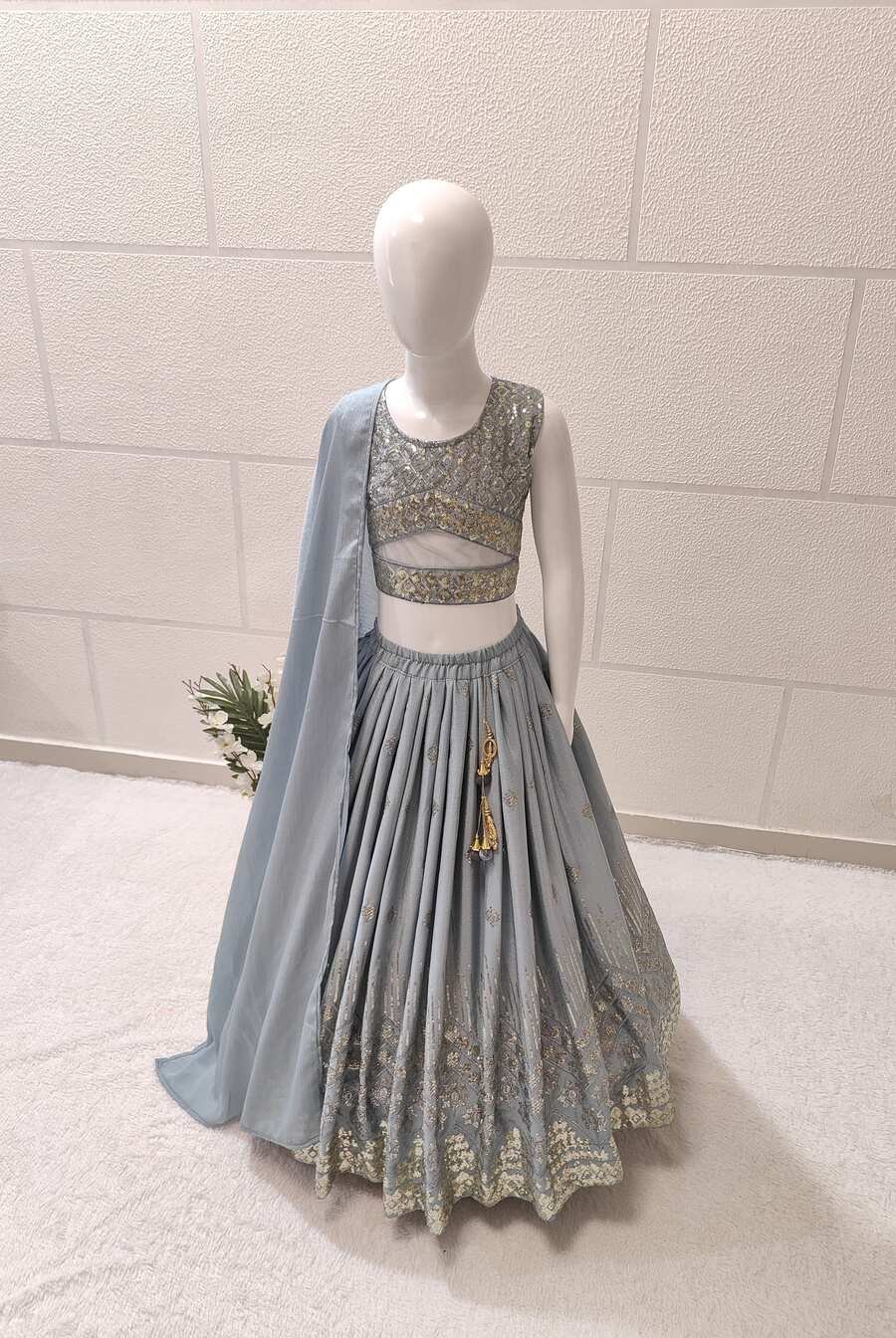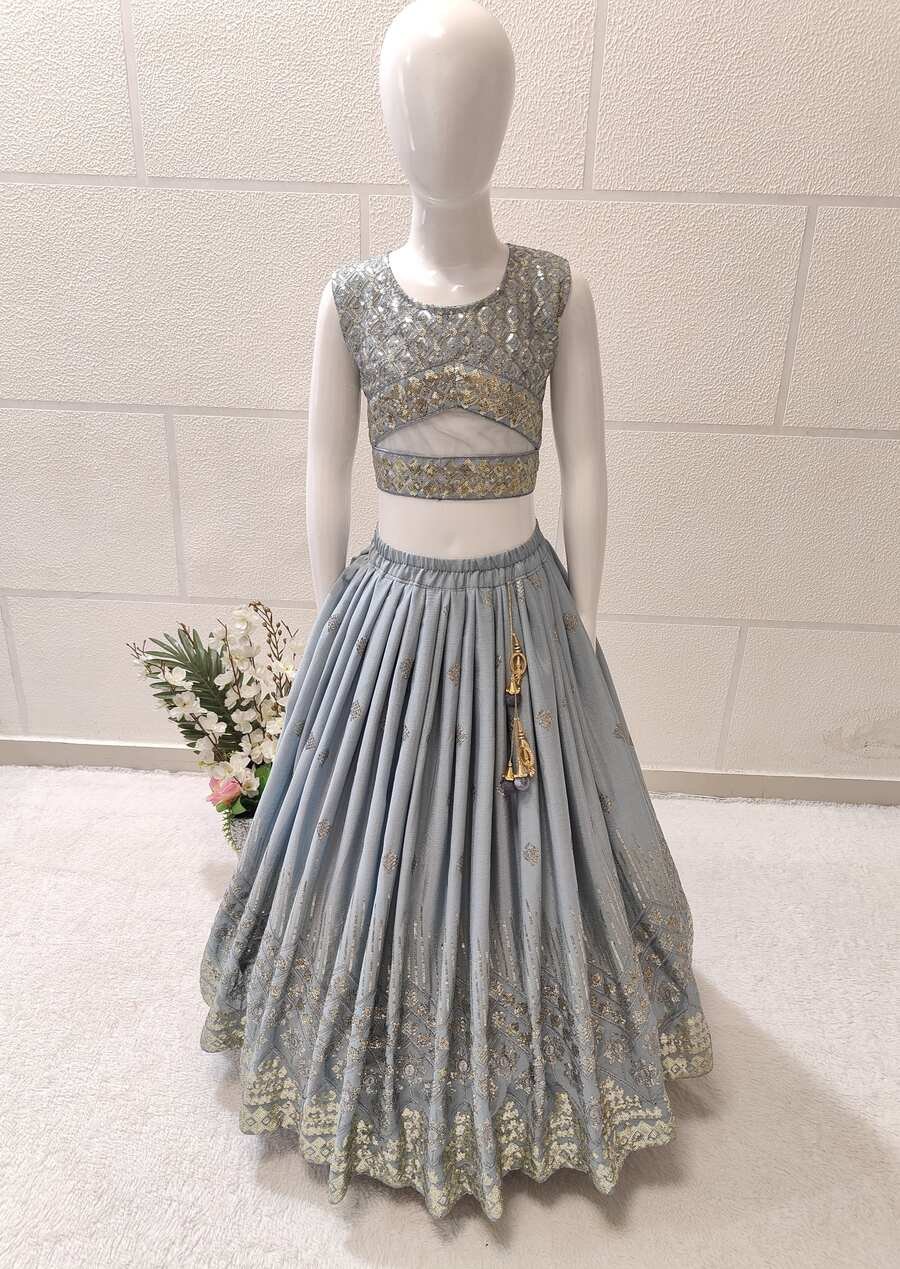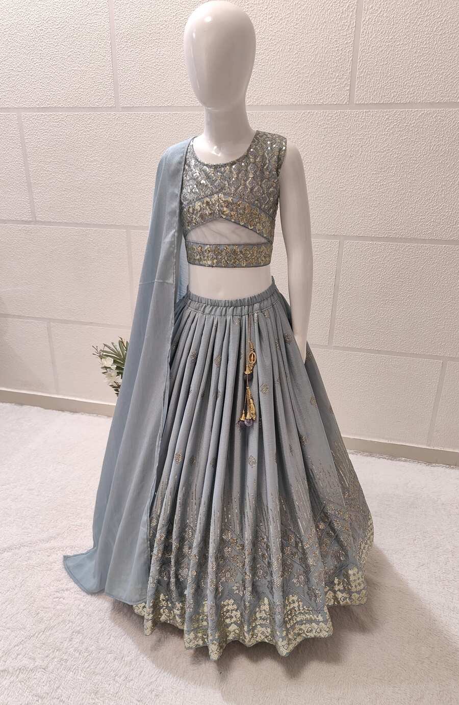PARTY WEAR GEORGETTE EMBROIDERY SEQUENCE WORK KID WEAR LEHENGA CHOLI WITH DUPATTA GREY