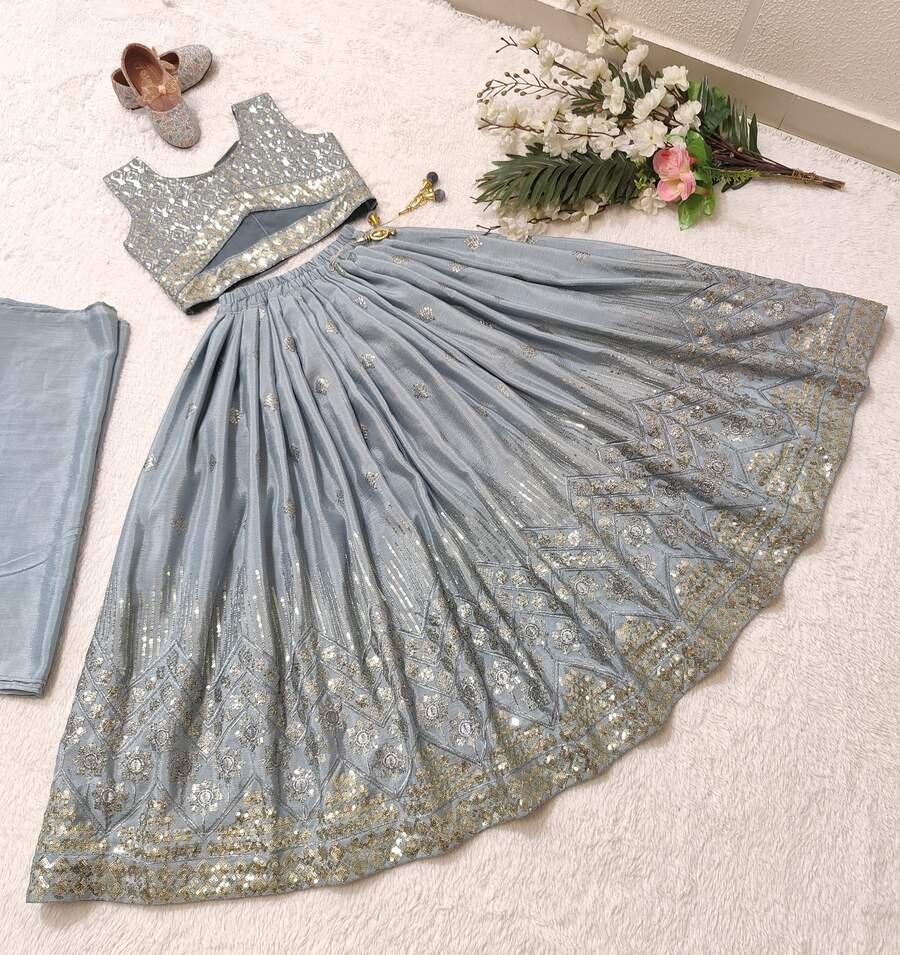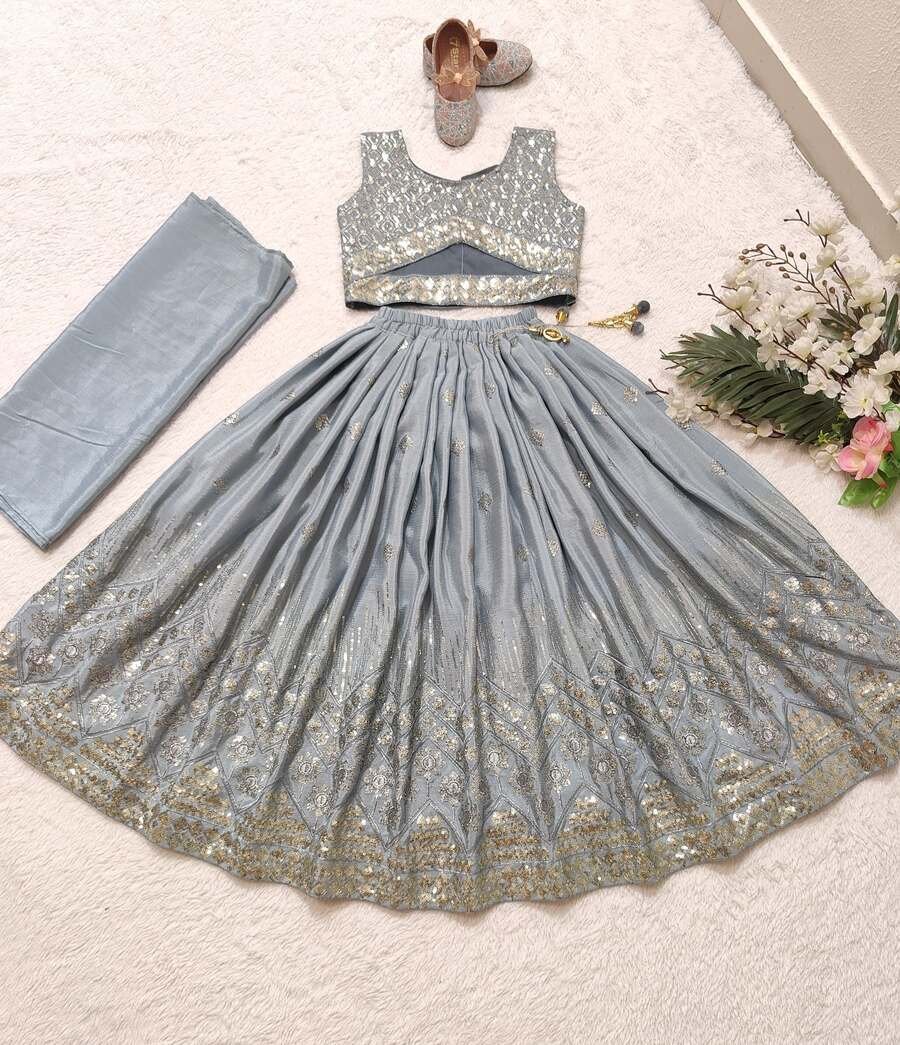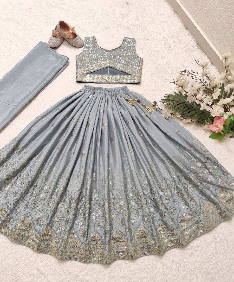PARTY WEAR GEORGETTE EMBROIDERY SEQUENCE WORK KID WEAR LEHENGA CHOLI WITH DUPATTA GREY