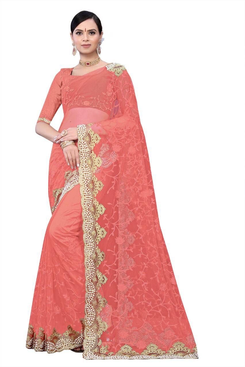 PARTY WEAR HEAVY NET AND EMBROIDERY DESIGN DIAMOND WORK SAREE GAJARI