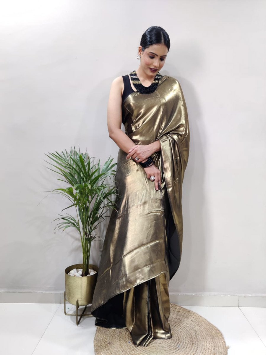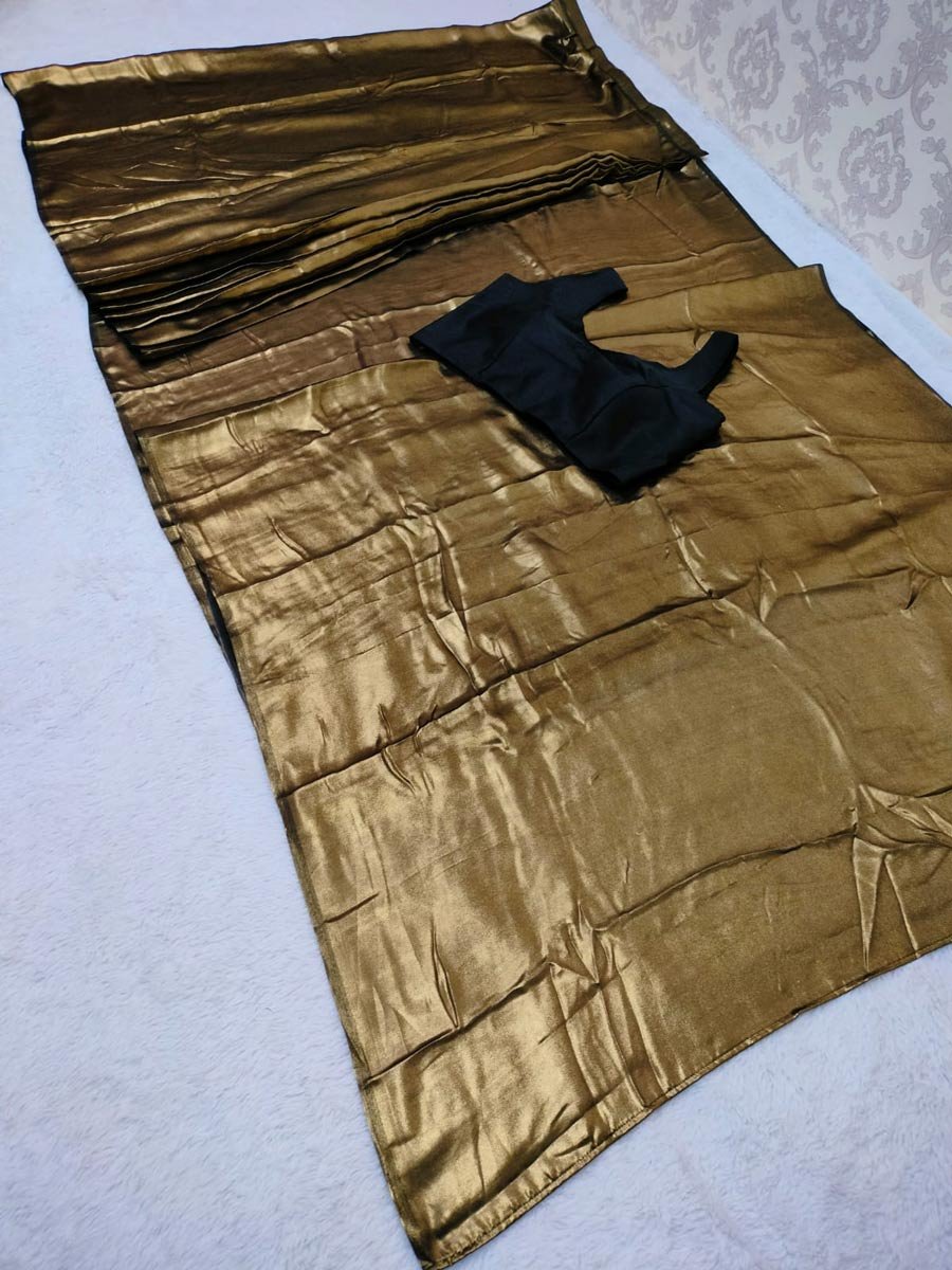 PARTY WEAR SATIN SILK PLAIN READY TO WEAR SAREE WITH UNSTITCHED BLOUSE BLACK