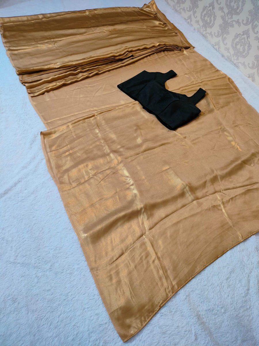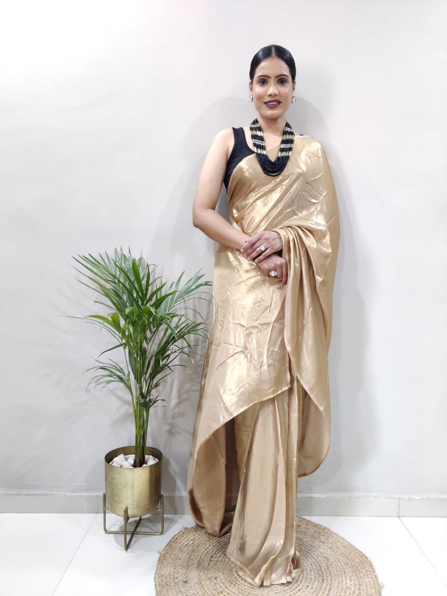 PARTY WEAR SATIN SILK PLAIN READY TO WEAR SAREE WITH UNSTITCHED BLOUSE CREAM