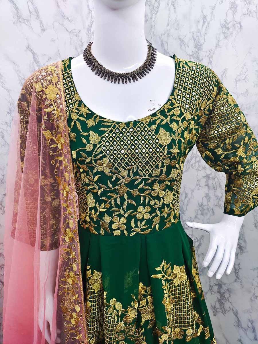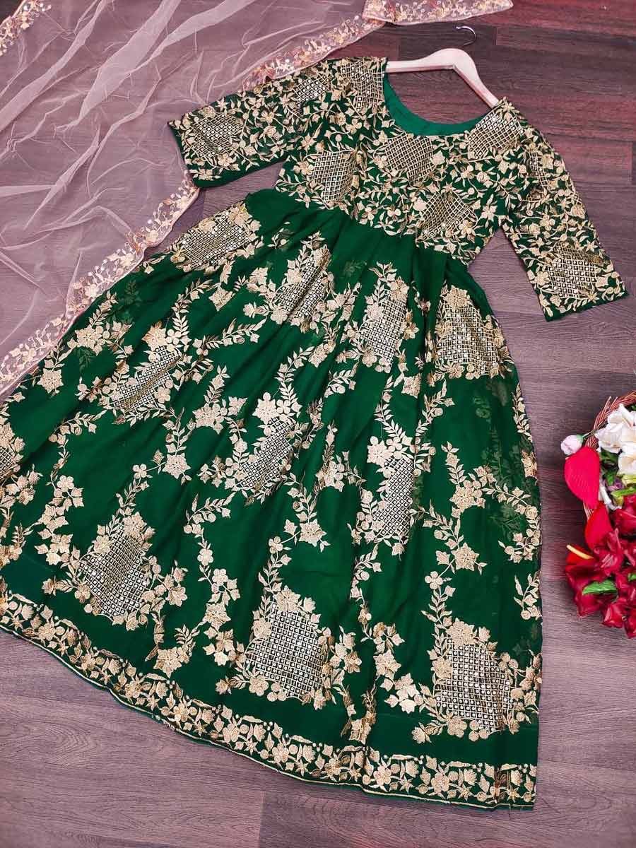 PARTY WEAR TAPETA SILK EMBROIDERY SEQUENCE WORK GOWN WITH DUPATTA GREEN
