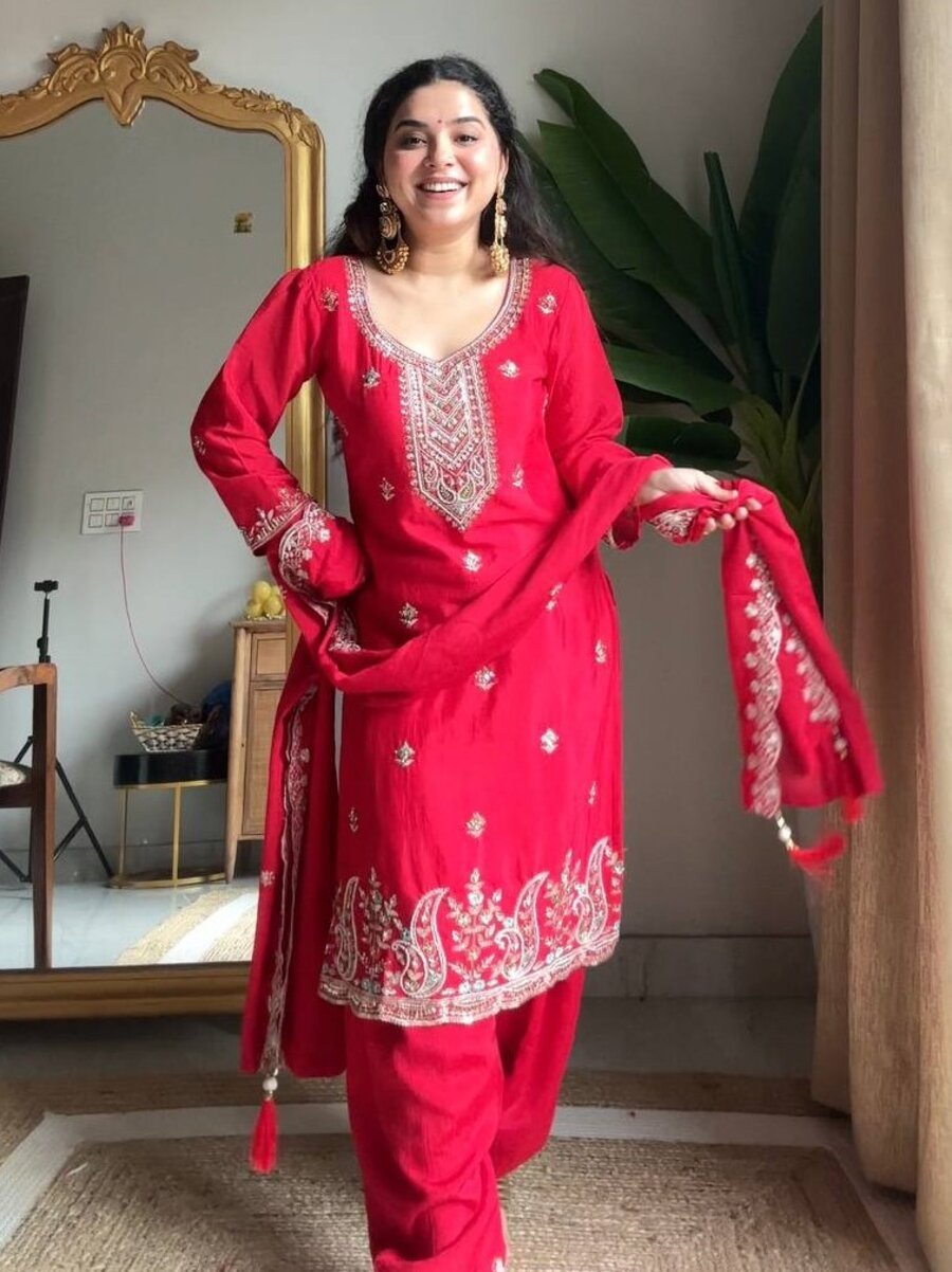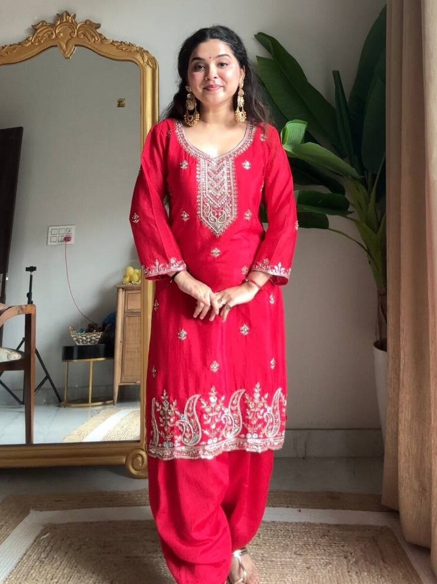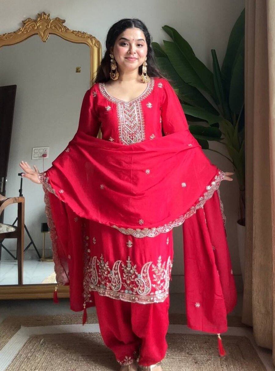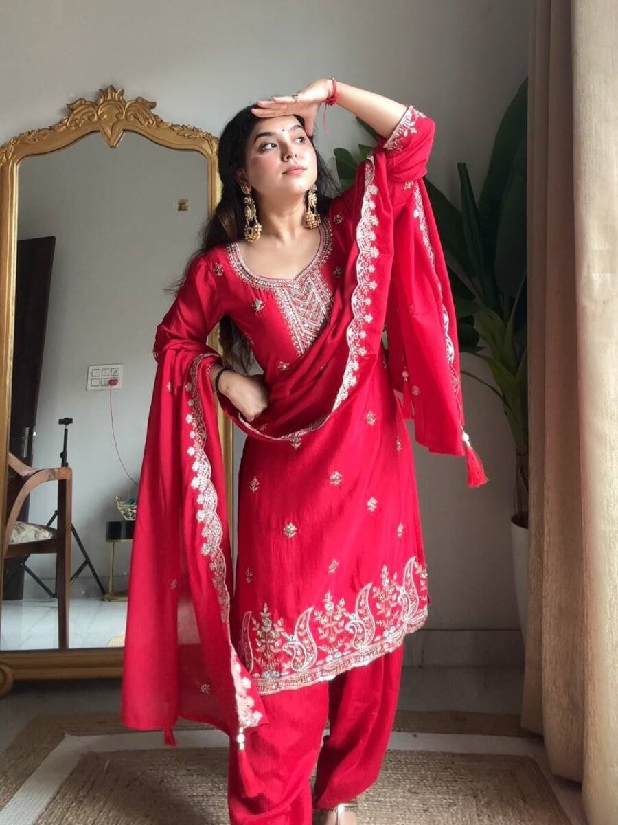 RICH LOOK CHINON BEADS AND SEQUENCE EMBROIDERY WORK TOP PATIYALA WITH DUPATTA RANI