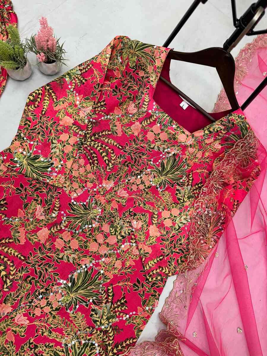 SHARARA : CHINON PRINT WITH SEQUENCE EMBROIDERY WORK