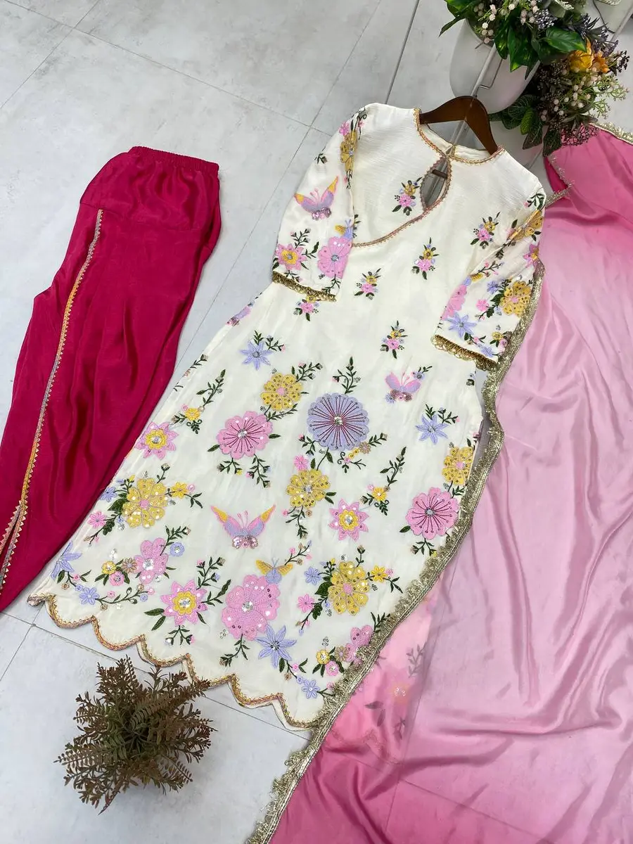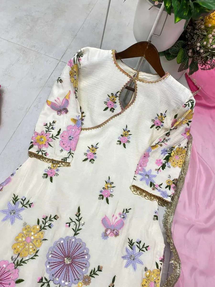 WORK : HEVAY SEQUENCE EMBROIDERY WORK FRONT AND BACK SIDE