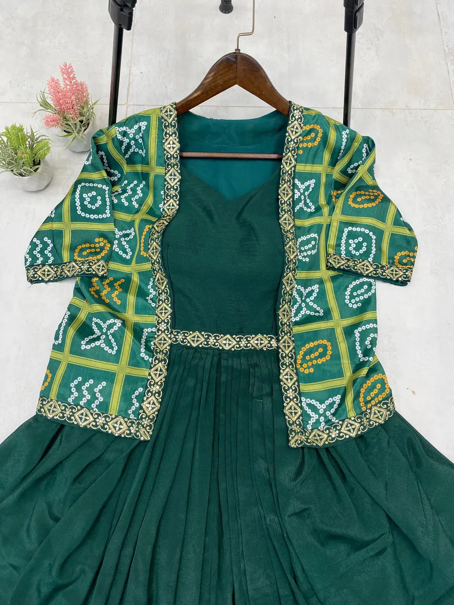 RICH LOOK CHINON SEQUENCE MBROIDERY LACE WORK ONE PIECE DHOTI STYLE WITH KOTI GREEN