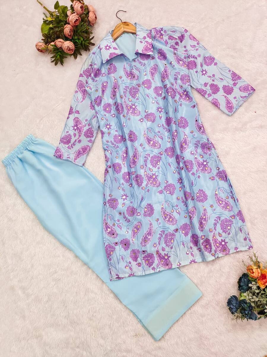 RICH LOOK CHINON SILK DIGITAL PRINT WITH REAL MIRROR WORKB TOP BOTTOM SET PINK
