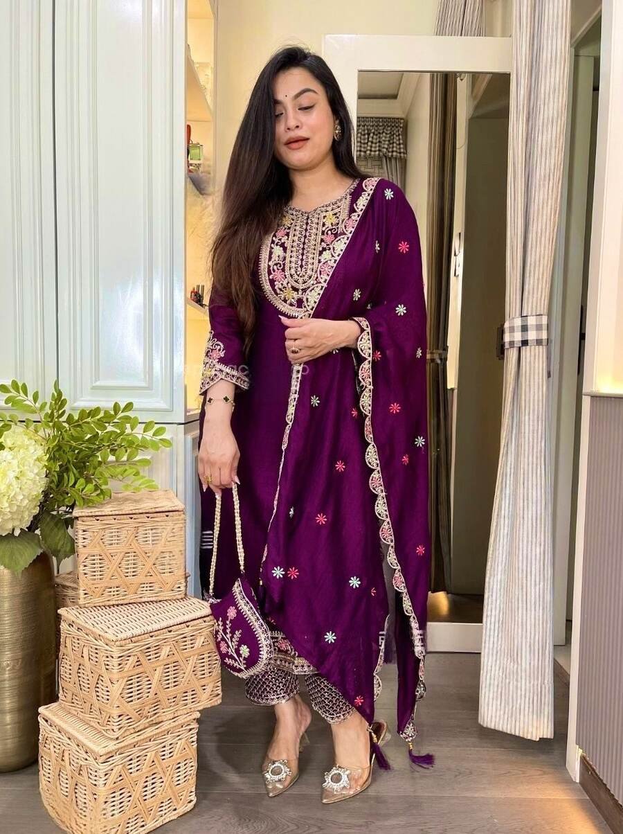 WORK : HEAVY EMBROIDERY MULTI NEEDLE SEQUENCE WORK WITH READY-MADE LATKAN BORDER