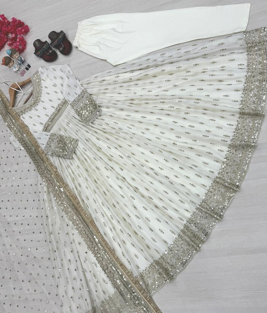 WORK : EMBROIDERY 5 MM SEQUENCE WORK WITH FOUR SIDE FANCY LACE BORDER