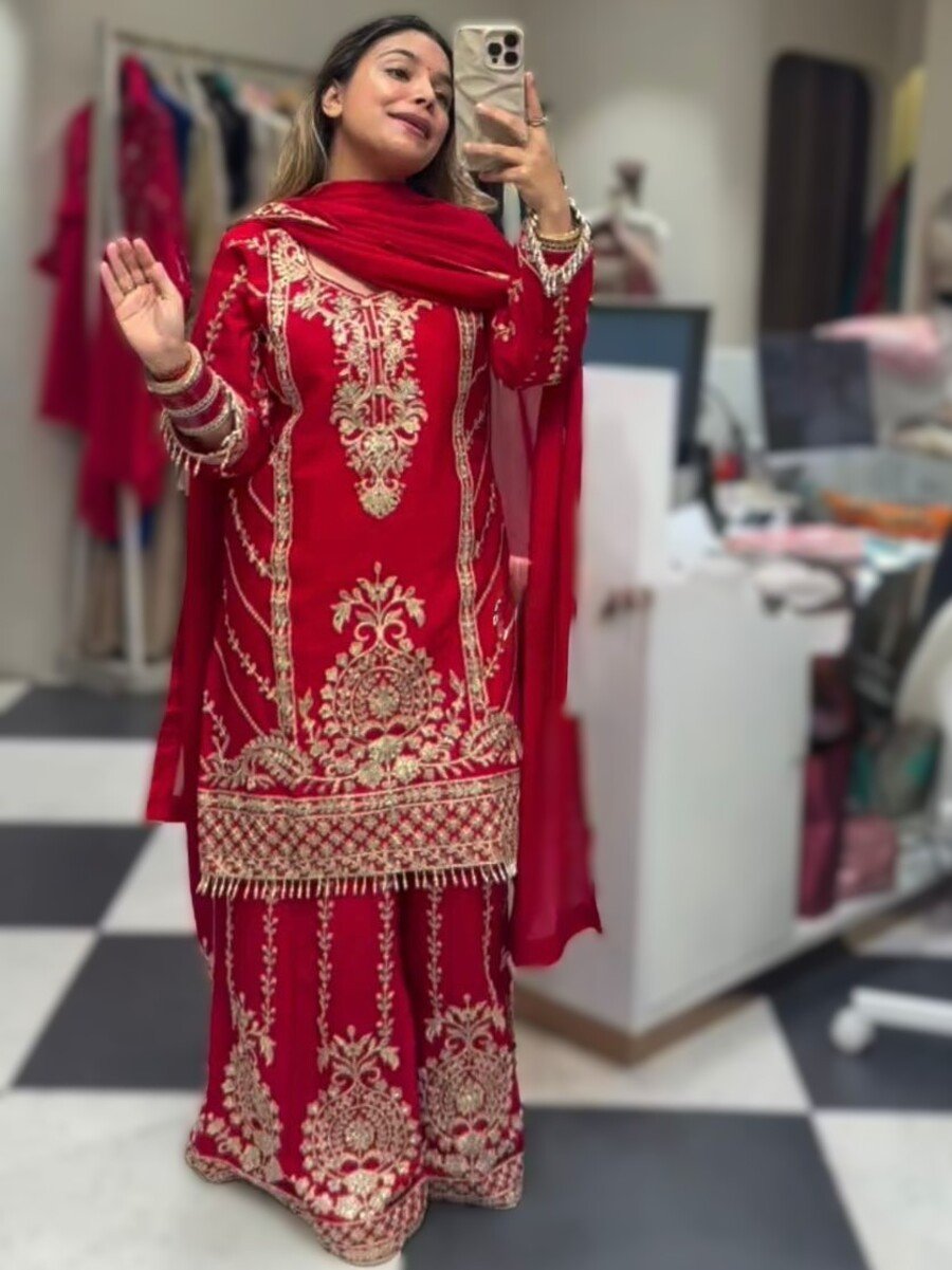 WORK :- THREAD WITH SEQUENCE AND FANCY LACE WORK