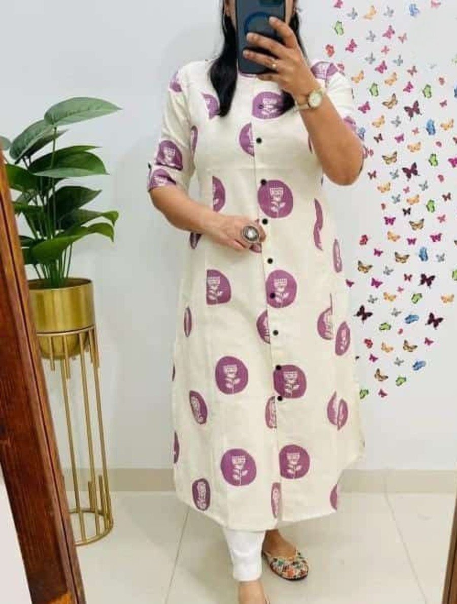 RICH LOOK COTTON RAYON DIGITAL PRINT WORK KURTI WITH PENT SET LAVENDER