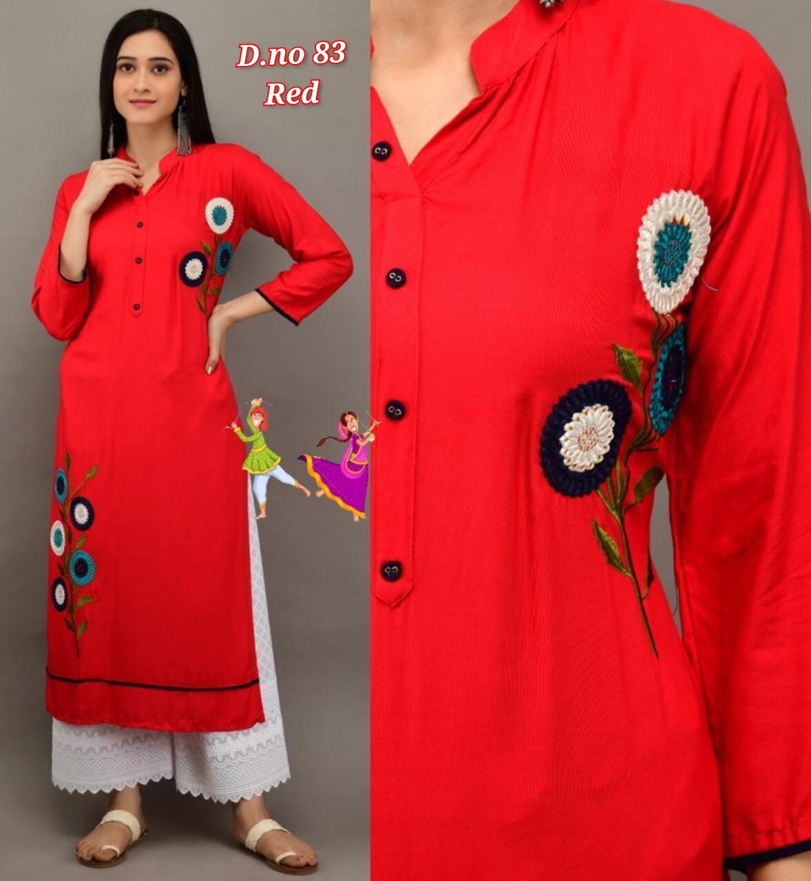 KURTI FABRIC: 14KG RAYON WITH BEAUTIFUL EMBROIDERY WORK