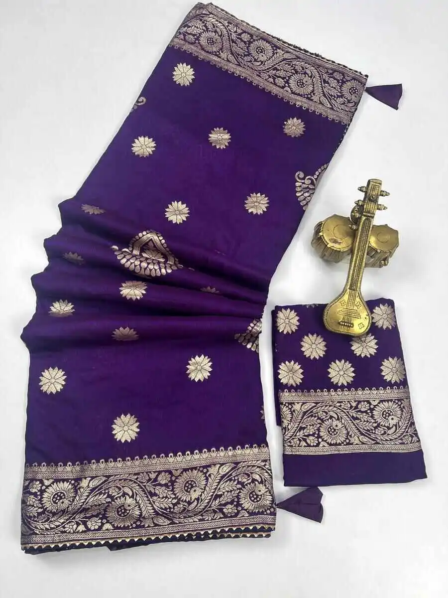 RICH LOOK DOLA SILK ZARI AND WEAVING WITH PIPING LACE BORDER WORK SAREE WITH UNSTITCHED BLOUSE PURPLE
