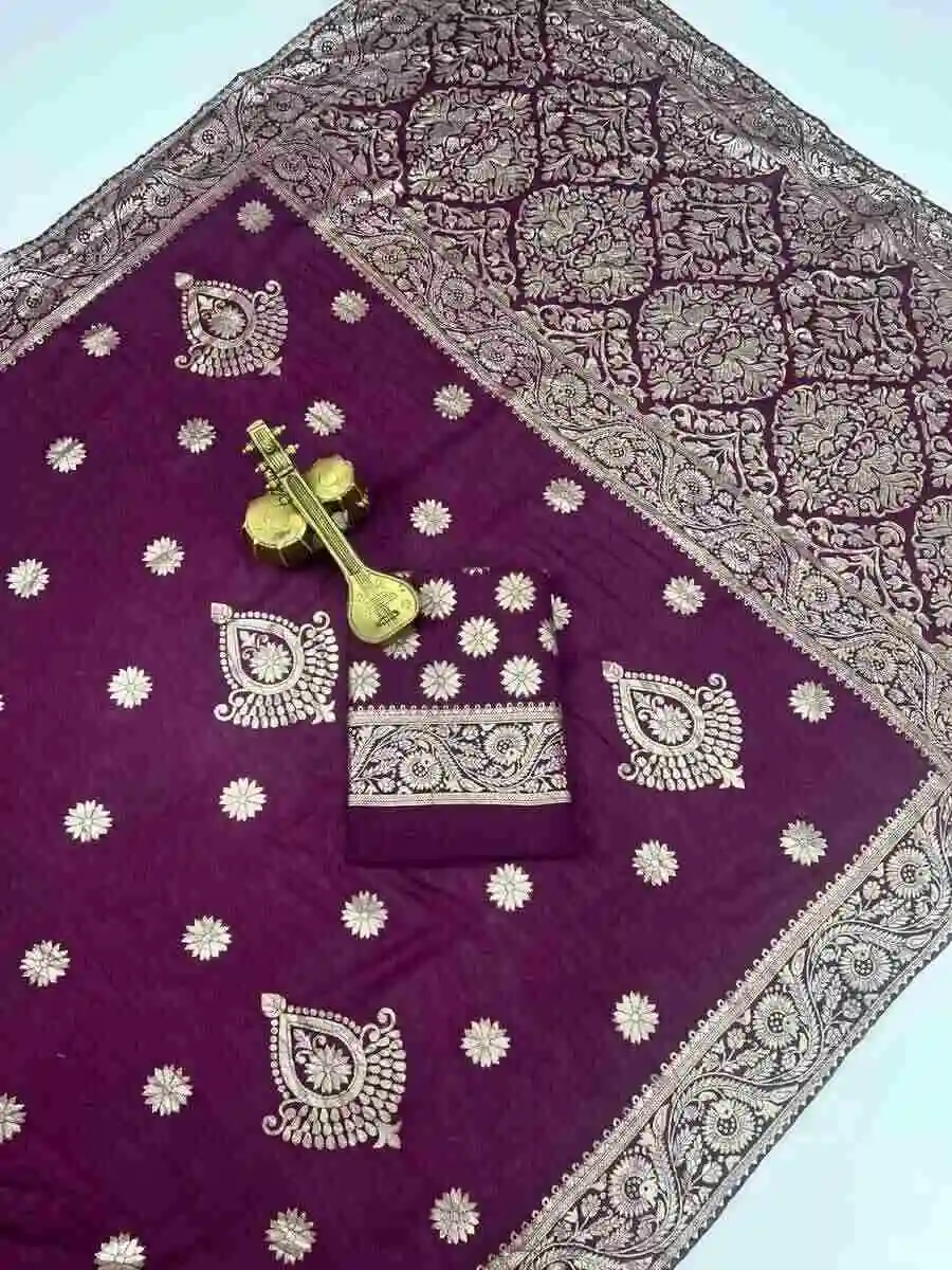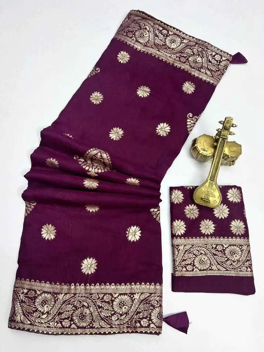 RICH LOOK DOLA SILK ZARI AND WEAVING WITH PIPING LACE BORDER WORK SAREE WITH UNSTITCHED BLOUSE WINE