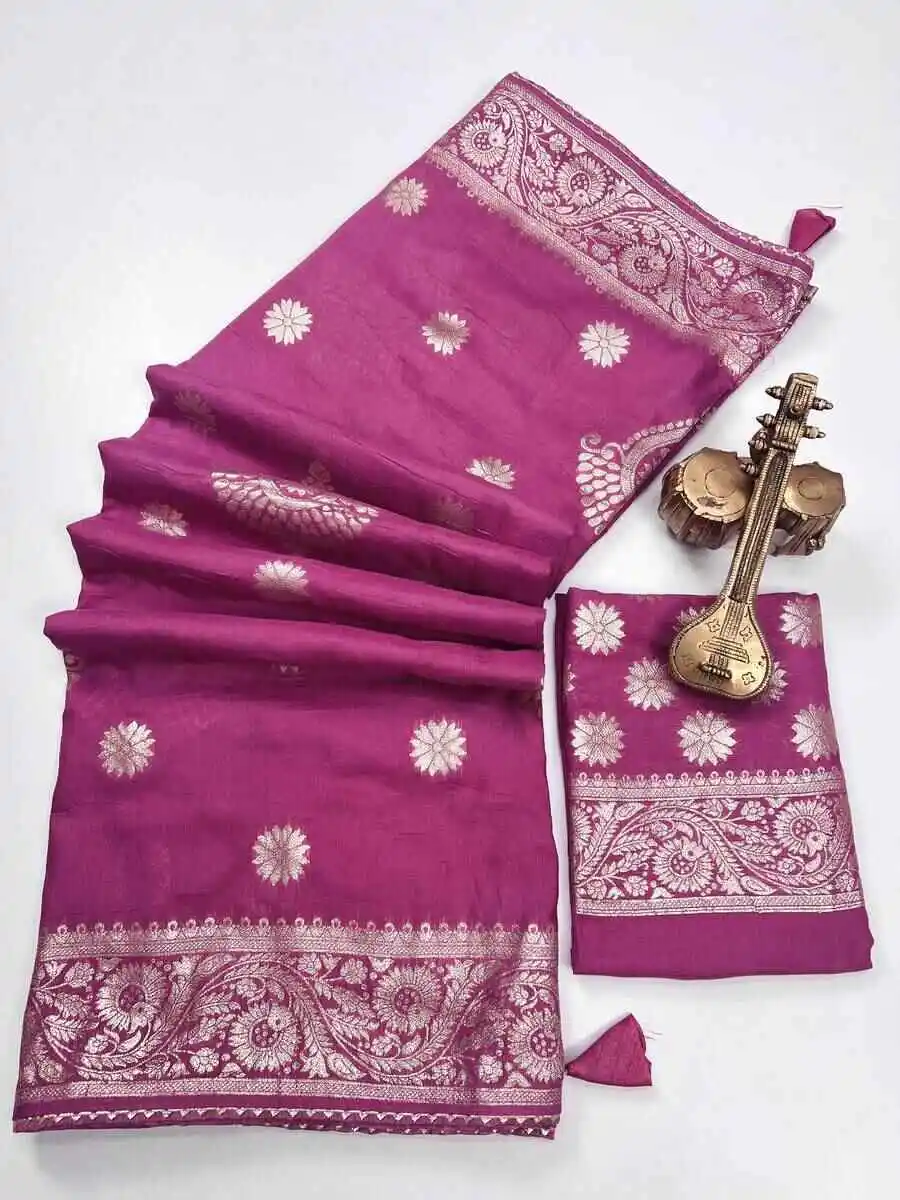 RICH LOOK DOLA SILK ZARI AND WEAVING WITH PIPING LACE BORDER WORK SAREE WITH UNSTITCHED BLOUSE WINE