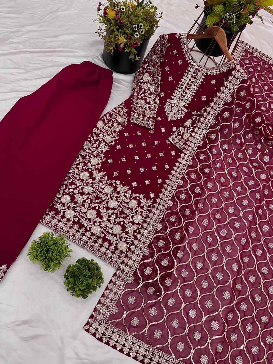 FABRIC : HEAVY FAUX GEORGETTE WITH 5 MM EMBROIDERY SEQUENCE WORK