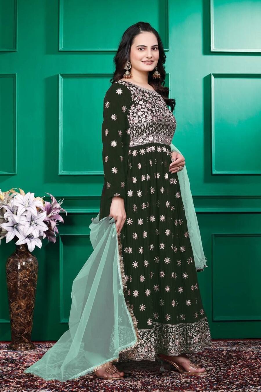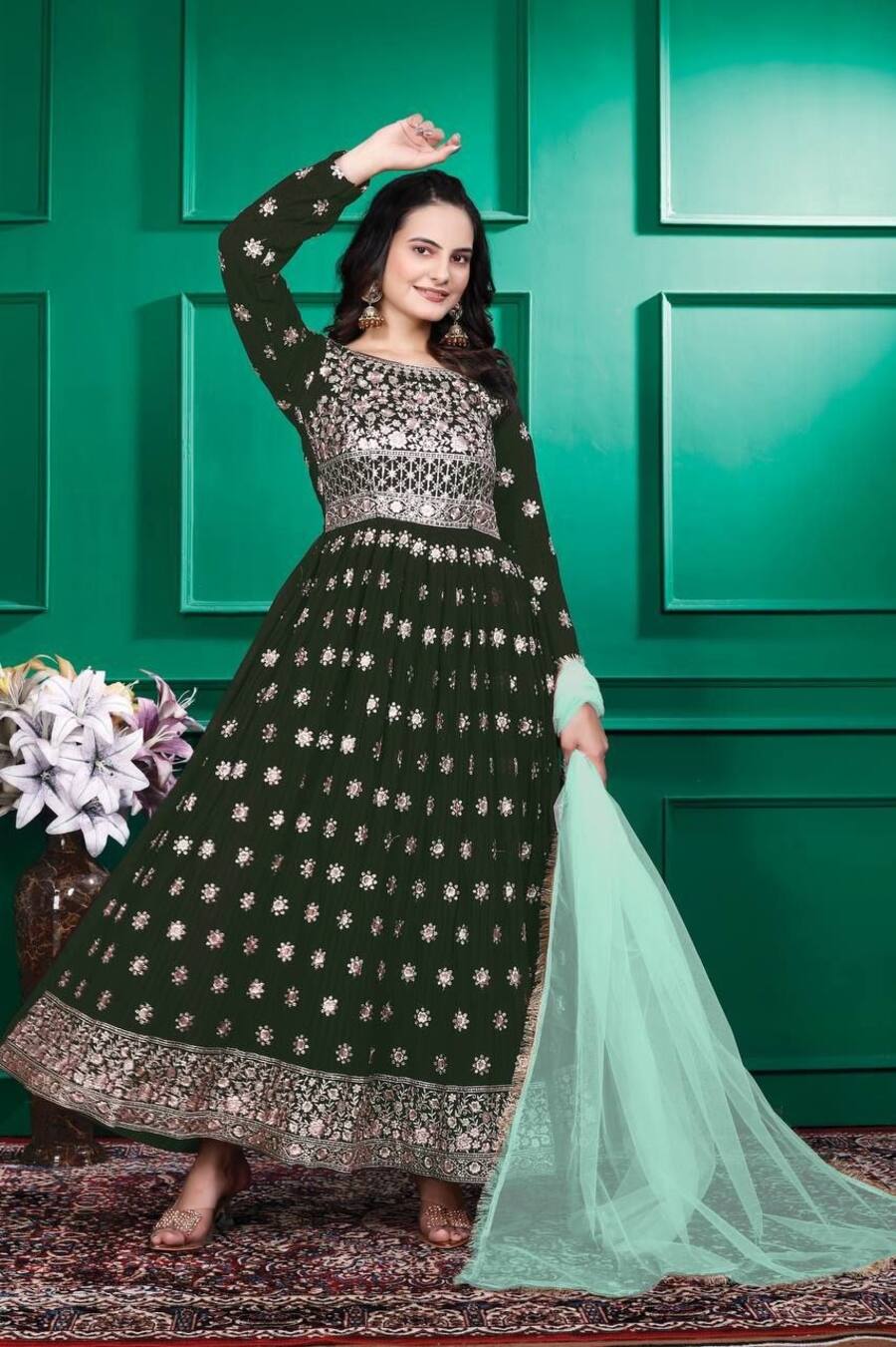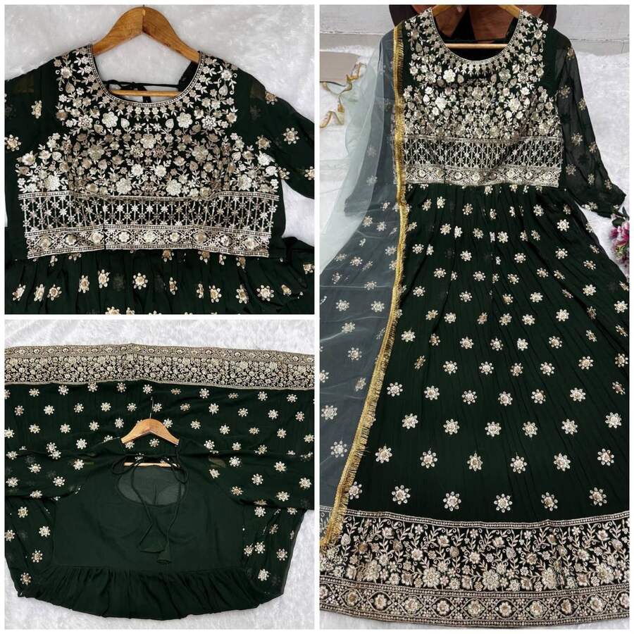 RICH LOOK FAUX GEORGETTE EMBROIDERY WORK ANARKALI GOWN WITH DUPATTA GREEN
