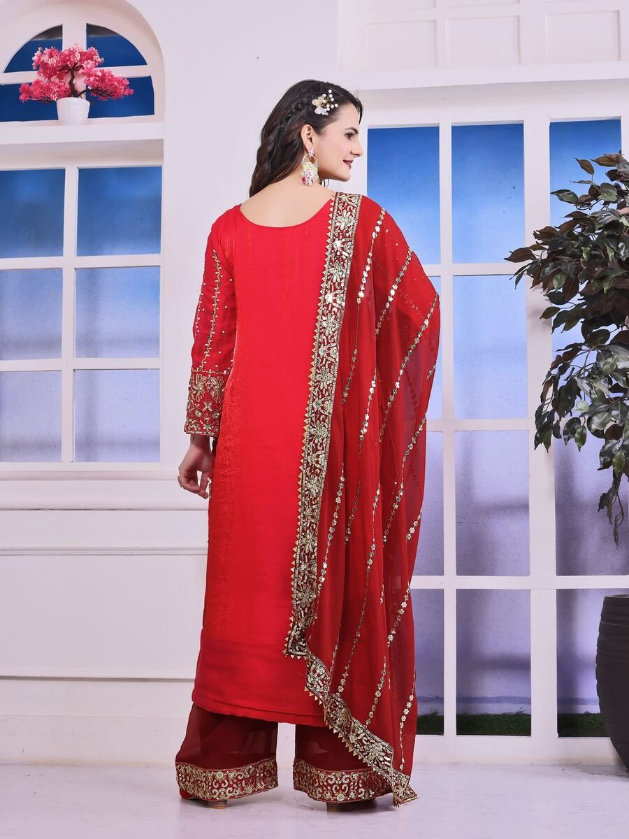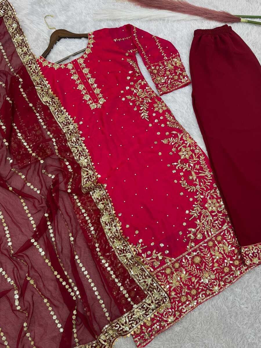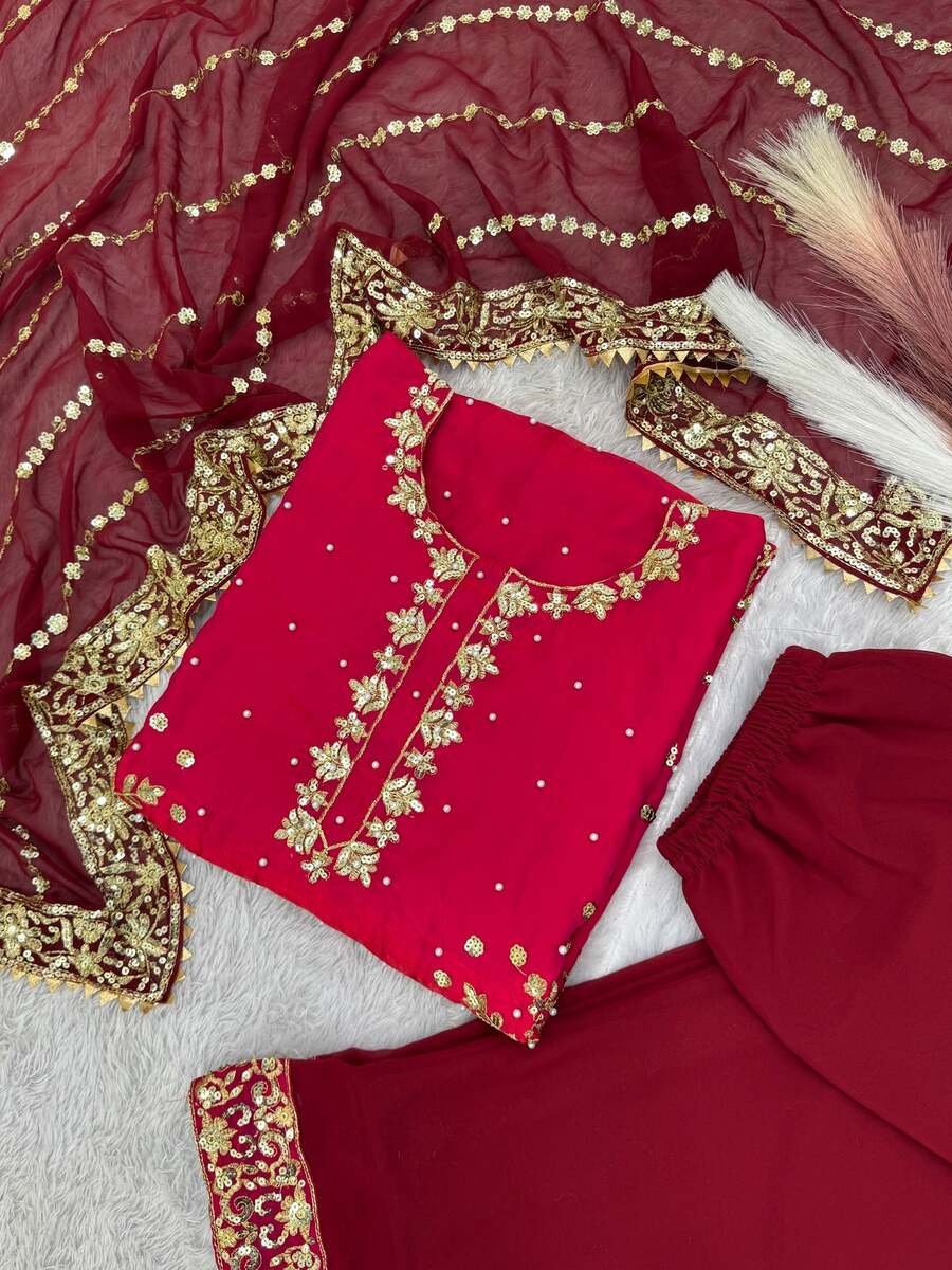 WORK :- BEAUTIFUL EMBROIDERY AND SEQUENCE WORK WITH RIVET MOTI WORK (WORK ONLY FRONT)