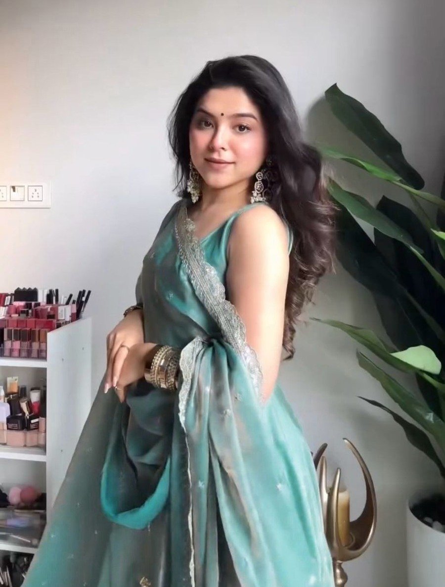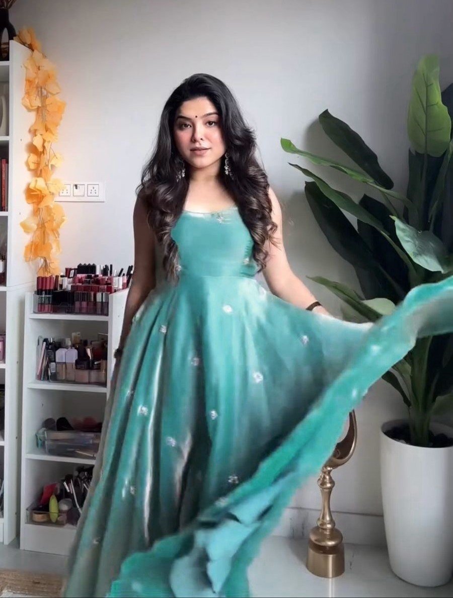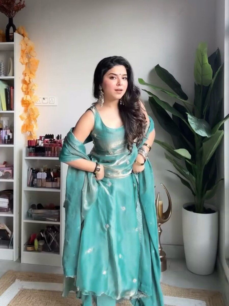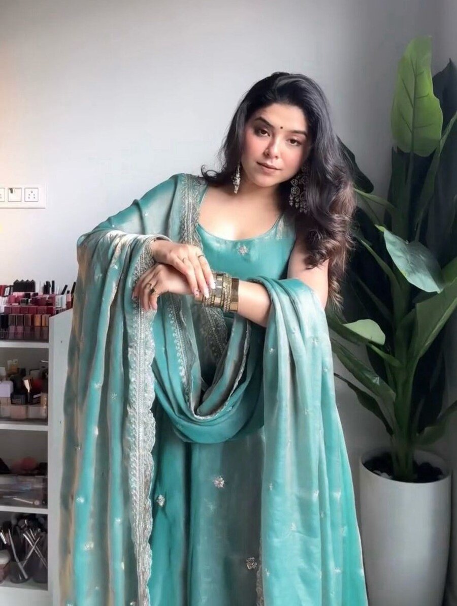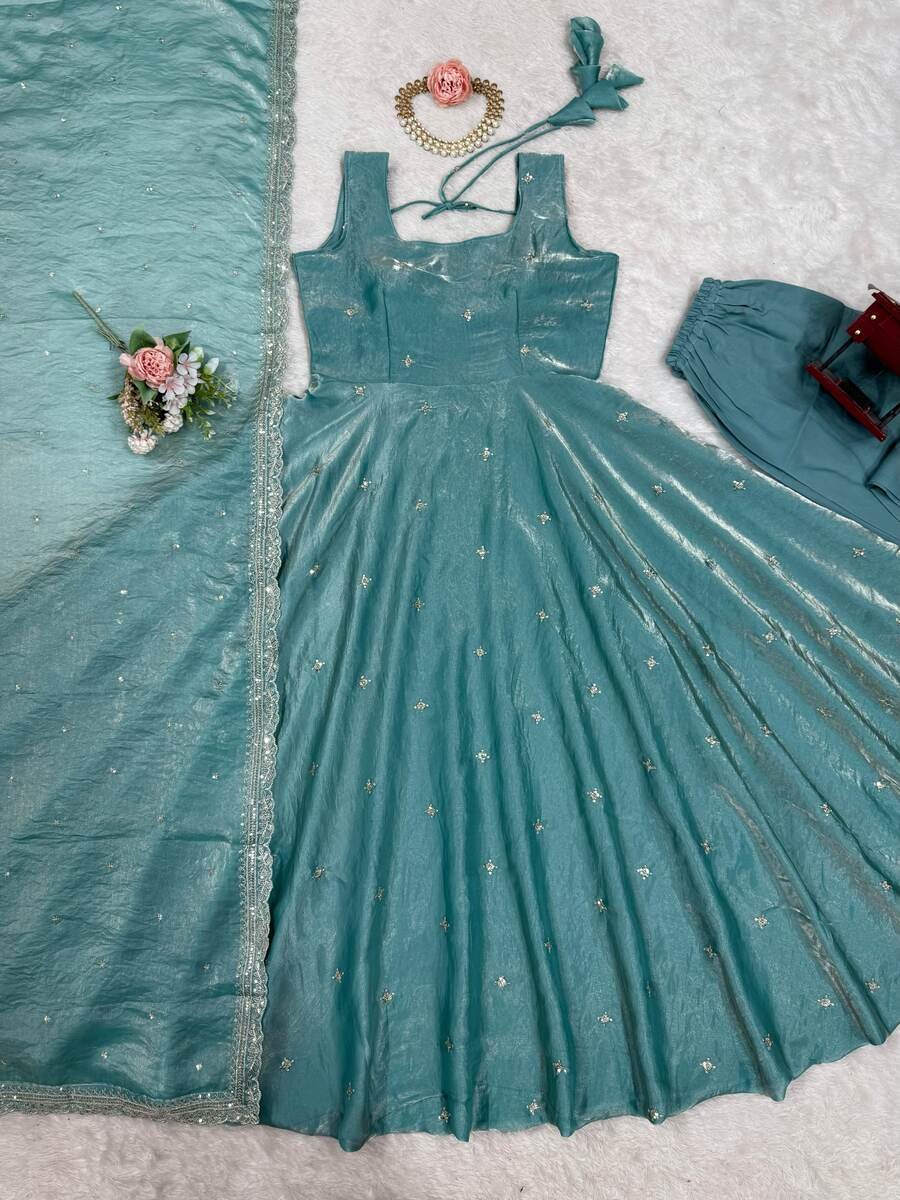 RICH LOOK FENDI SILK THREAD WITH SEQUENCE WORK GOWN BOTTOM WITH DUPATTA SKY