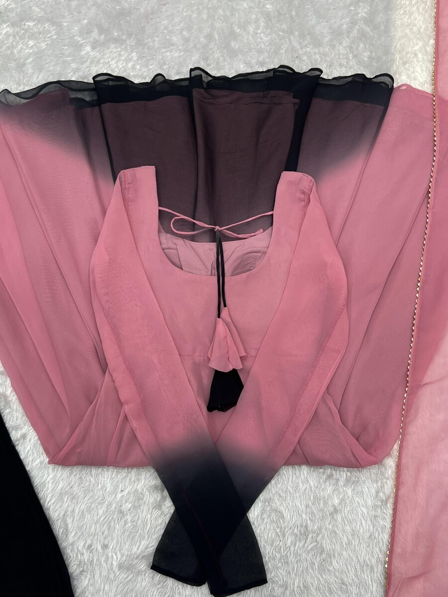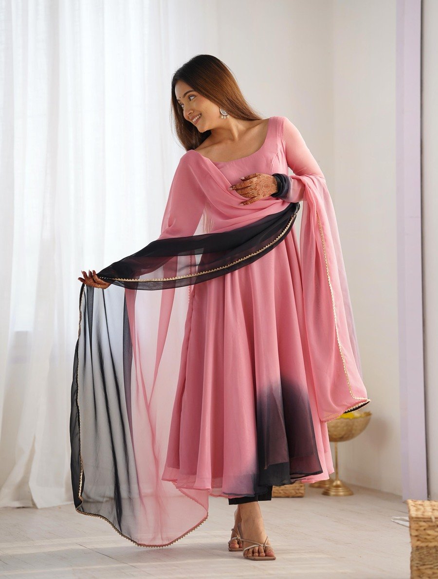 RICH LOOK GEORGETTE COLOURFULL PADDING GOWN BOTTOM WITH DUPATTA BABY PINK